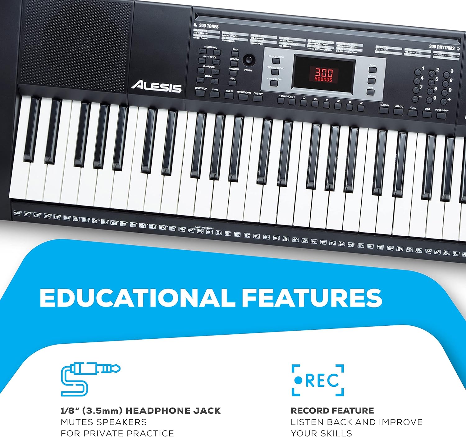 - Practice Makes Perfect - Enjoy 40 Demo songs, 300 built-in rhythms and a "Record" feature for capturing your performances. The headphones with a 1/8” jack mute the speakers for private practicing