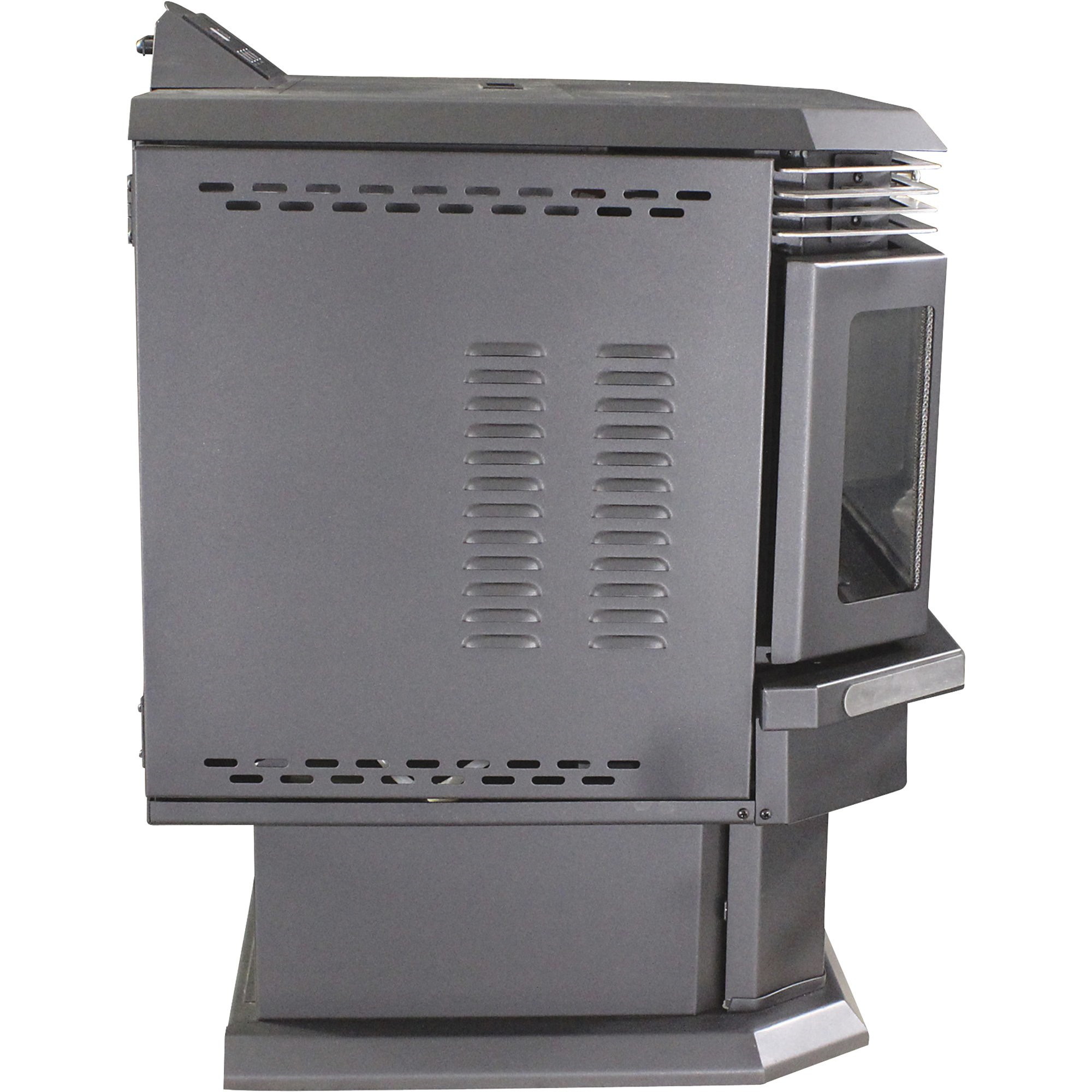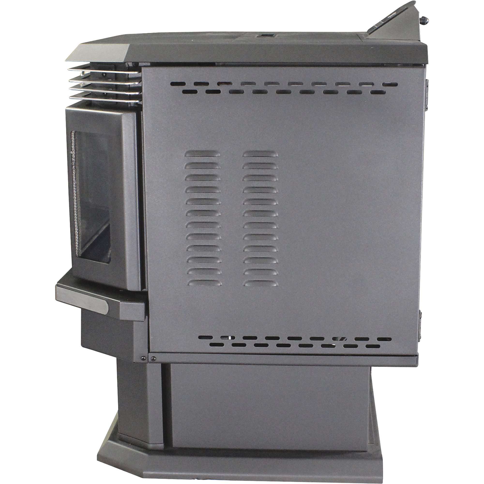 The AP5660 bay front pellet stove is a fully automatic pellet stove with auto ignition and easy to use electronic controls. Setting this pellet heater apart is the wide bay front glass design that gives you a wonderful view of the fire. The stove also has a faux log set and brick fireplace backer giving you the look of a traditional fireplace. It utilizes a temperature control circulation blower to spread heat evenly it is a durable yet sleek design, built for years of high performance.
