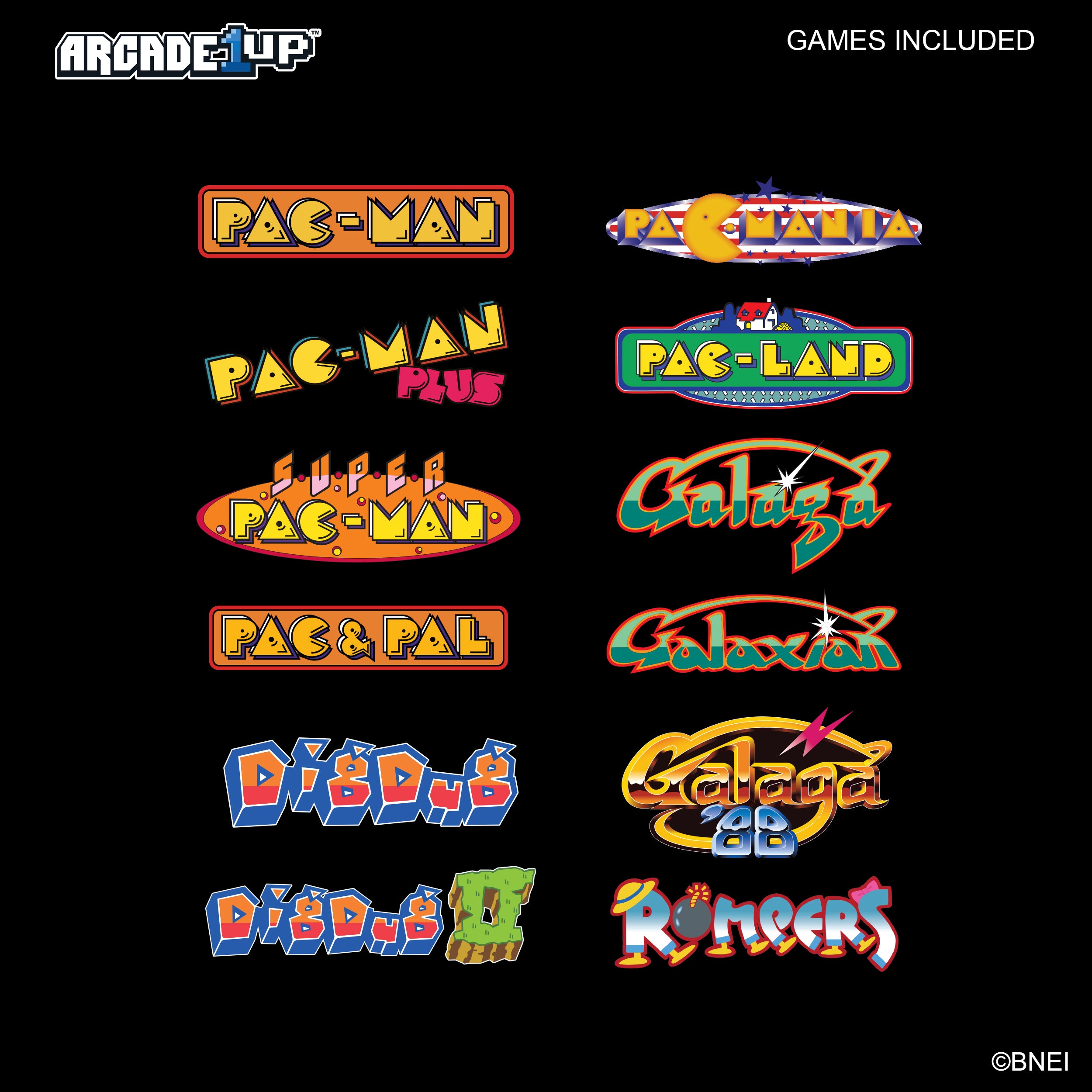 And what a phenomenally iconic game list this is…a dozen classic BANDAI NAMCO Entertainment titles packed inside! PAC-MAN™ PAC-LAND™ PAC-MAN™PLSUPER PAC-MAN™ PAC & PAL™ PAC-MANIA™ GALAXIAN™ GALAGA™ DIG DUG™ DIG DUG™II MAPPY™ and ROMPERS™. ALL included. Switch up to any included game at will with the easy to navigate on-screen menus.