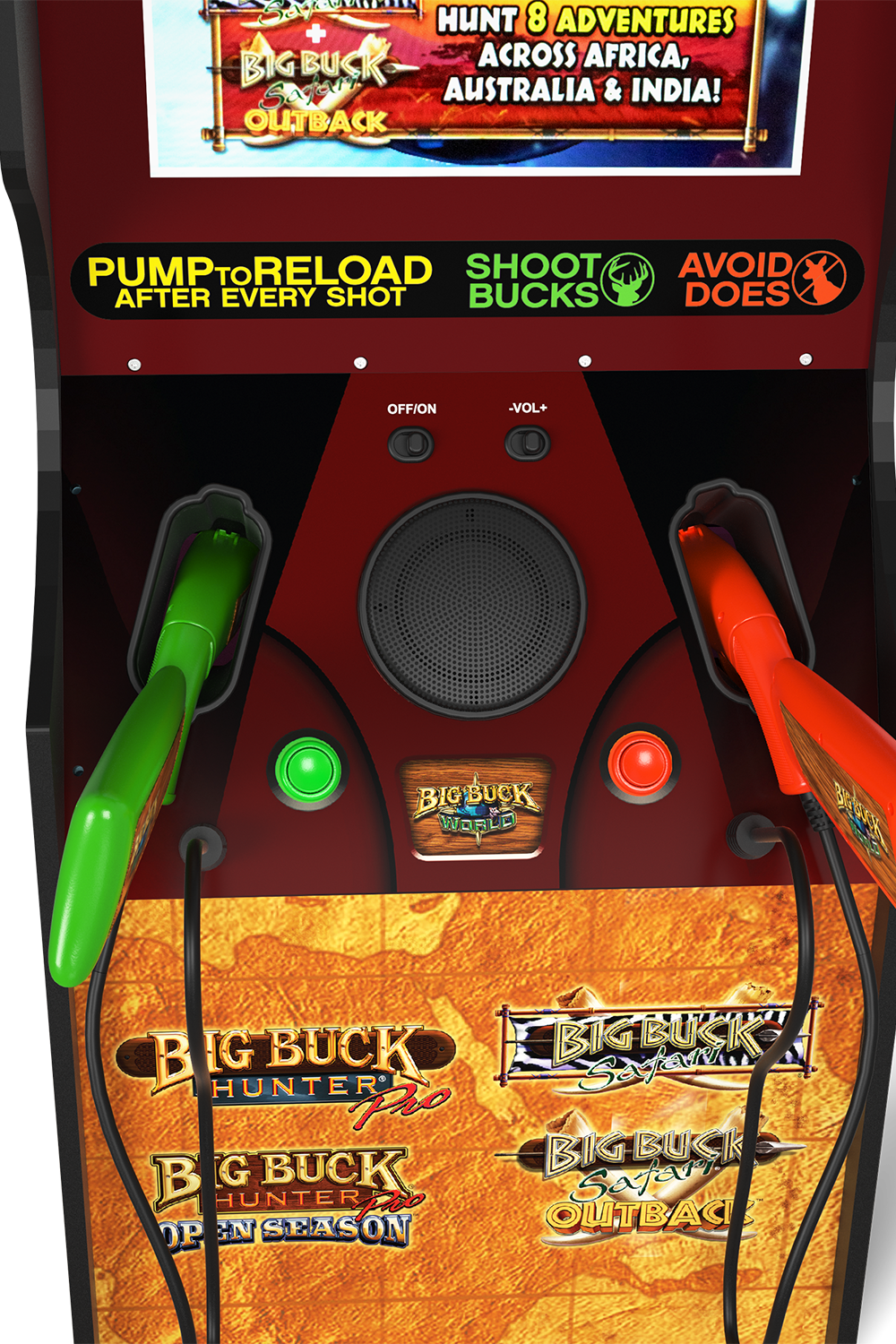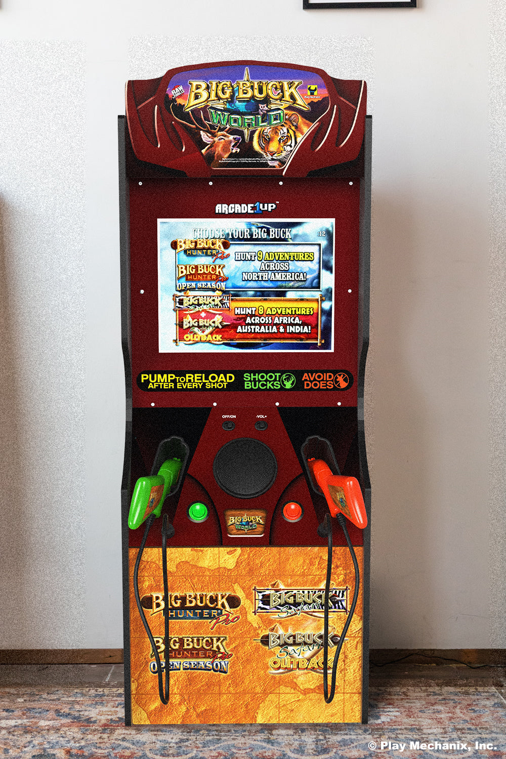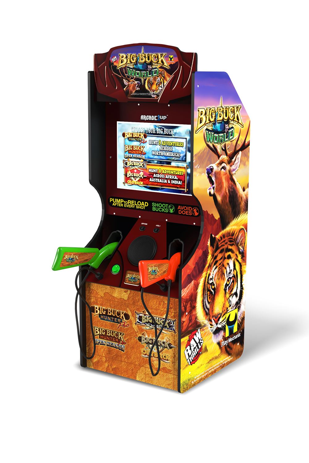 Experience the thrill of the great outdoors in the comfort of your own home with Arcade1Up's Big Buck World™ Classic Arcade Machine. Get ready for an unparalleled hunting adventure as you wield two pump-action rifles equipped with SINDEN light gun technology.