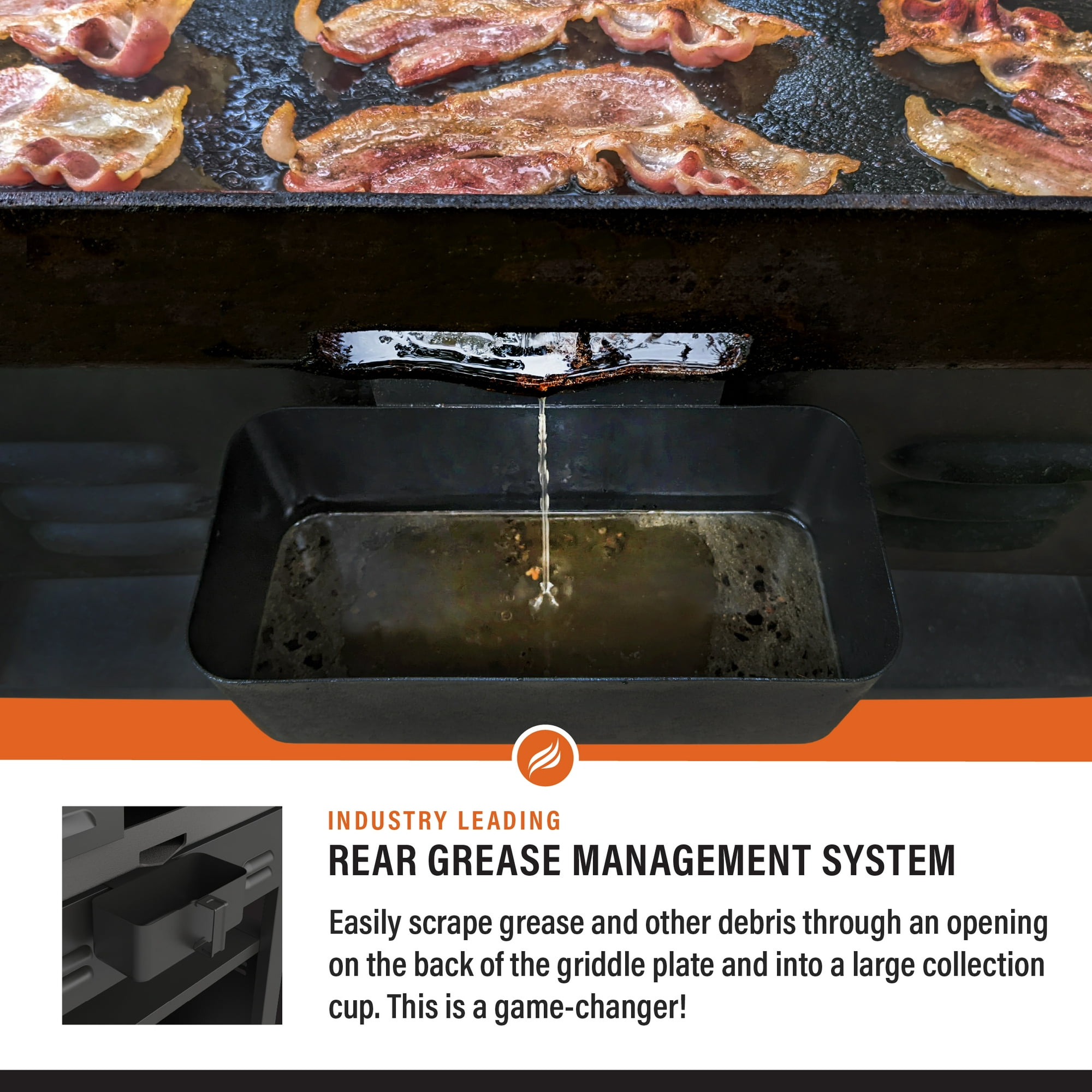 The rear grease management system and garbage and paper towel holders allow for quick clean-up. Don't forget to get disposable grease cups to make it even easier!