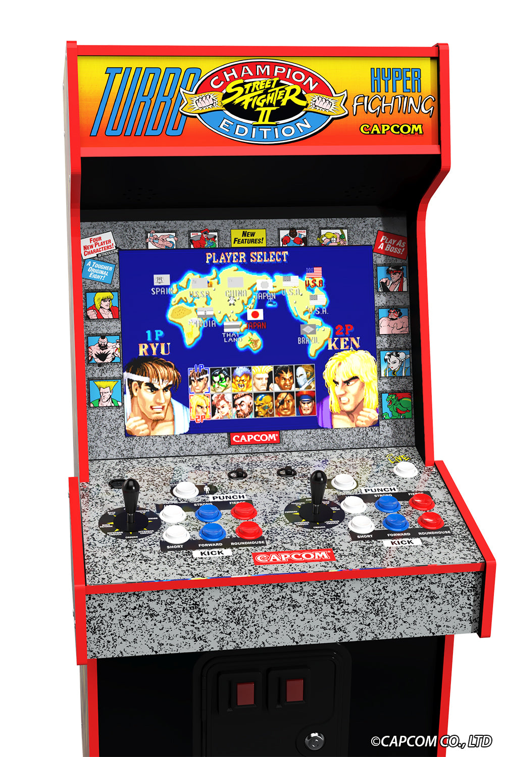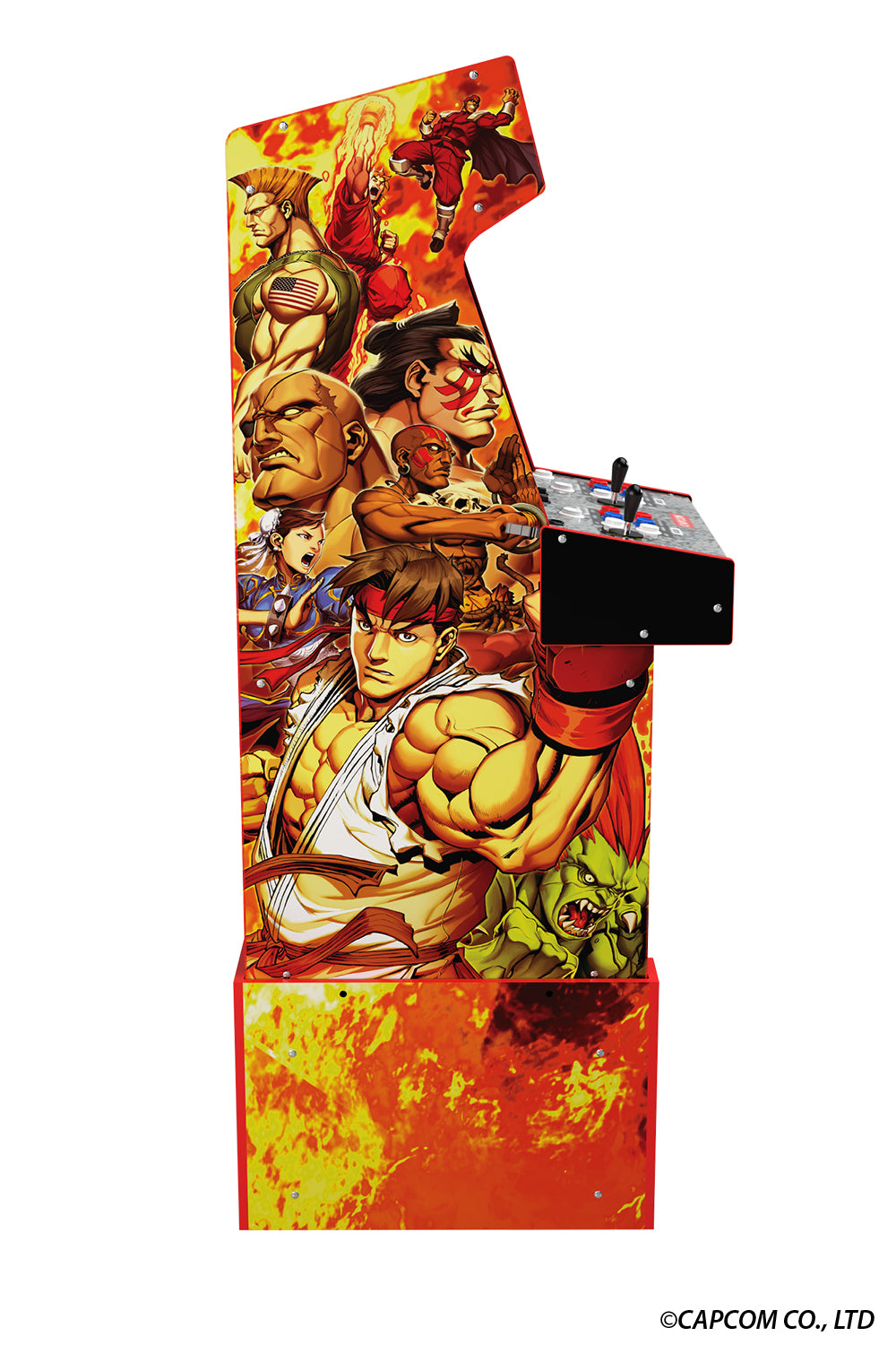 Now over three decades later (and as iconic as ever) Arcade1Up's Capcom Legacy Arcade Game Yoga Flame Edition features a red-themed cabinet aesthetic inspired by the mystical Dhalsim's fiery attack…and this Arcade1Up game machine is THE way to bring that fierce fightin' '90s style home!