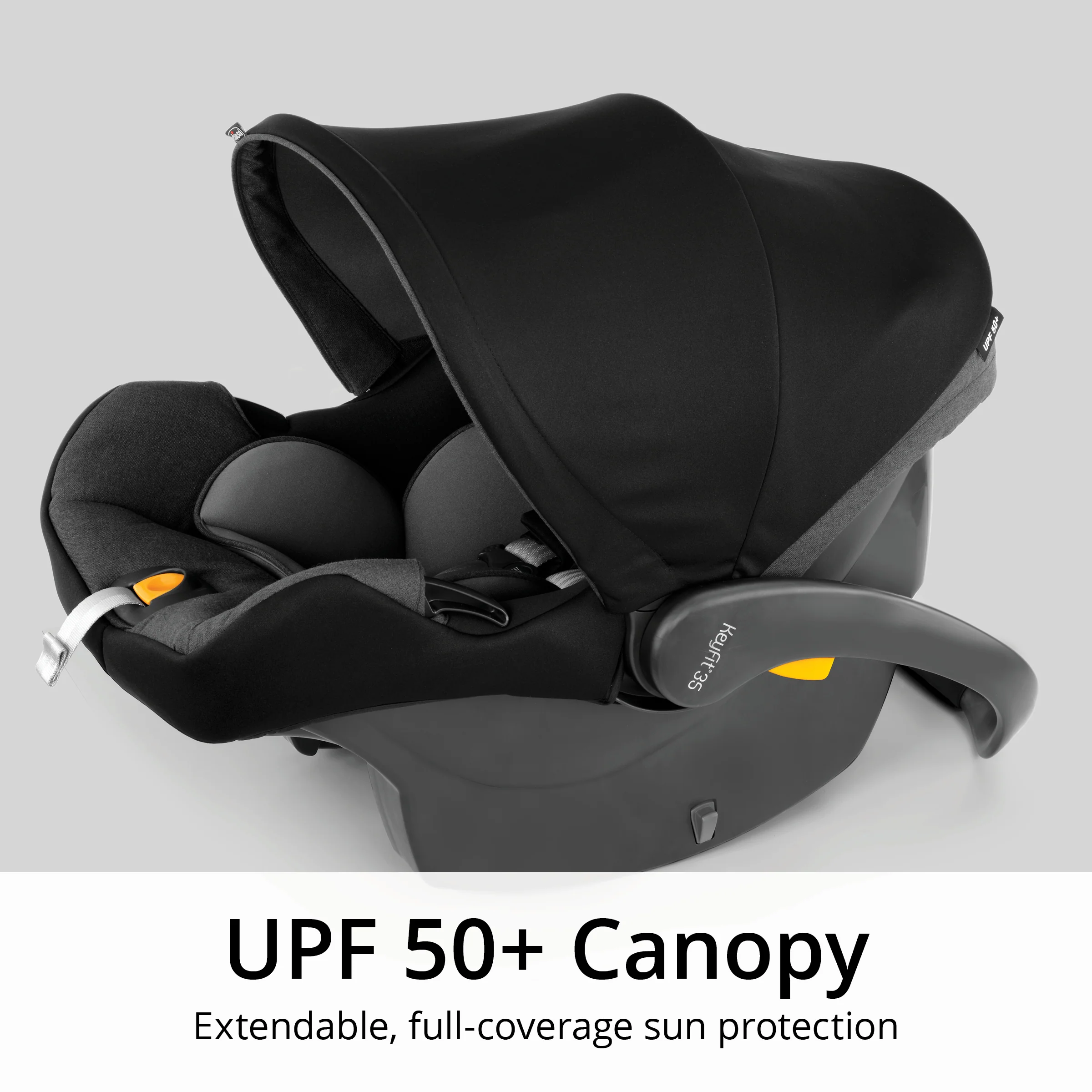 - KeyFit 35 features a modern design that's engineered for easy installation and secure attachment to the included stay-in-car base and compatible Chicco strollers (sold separately)