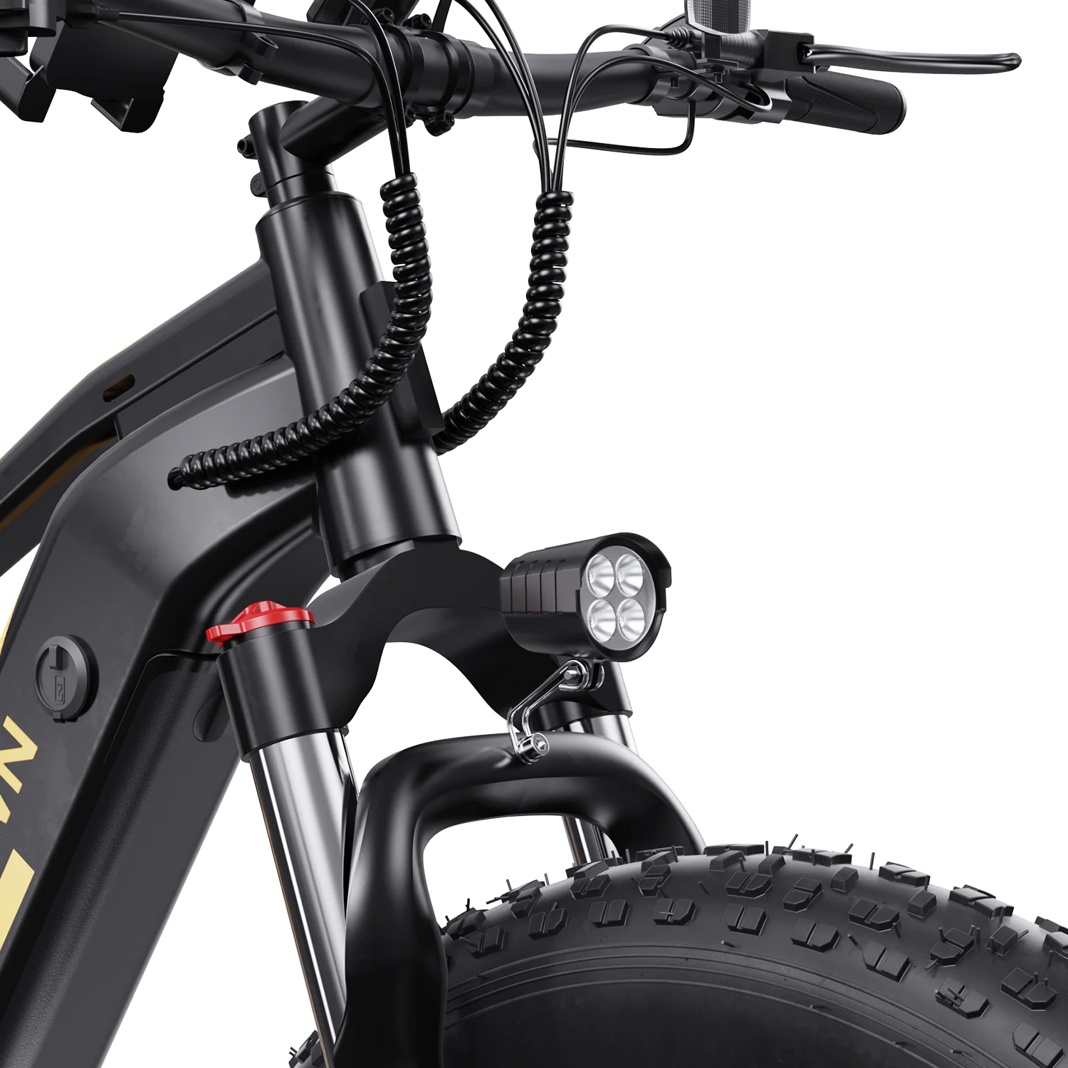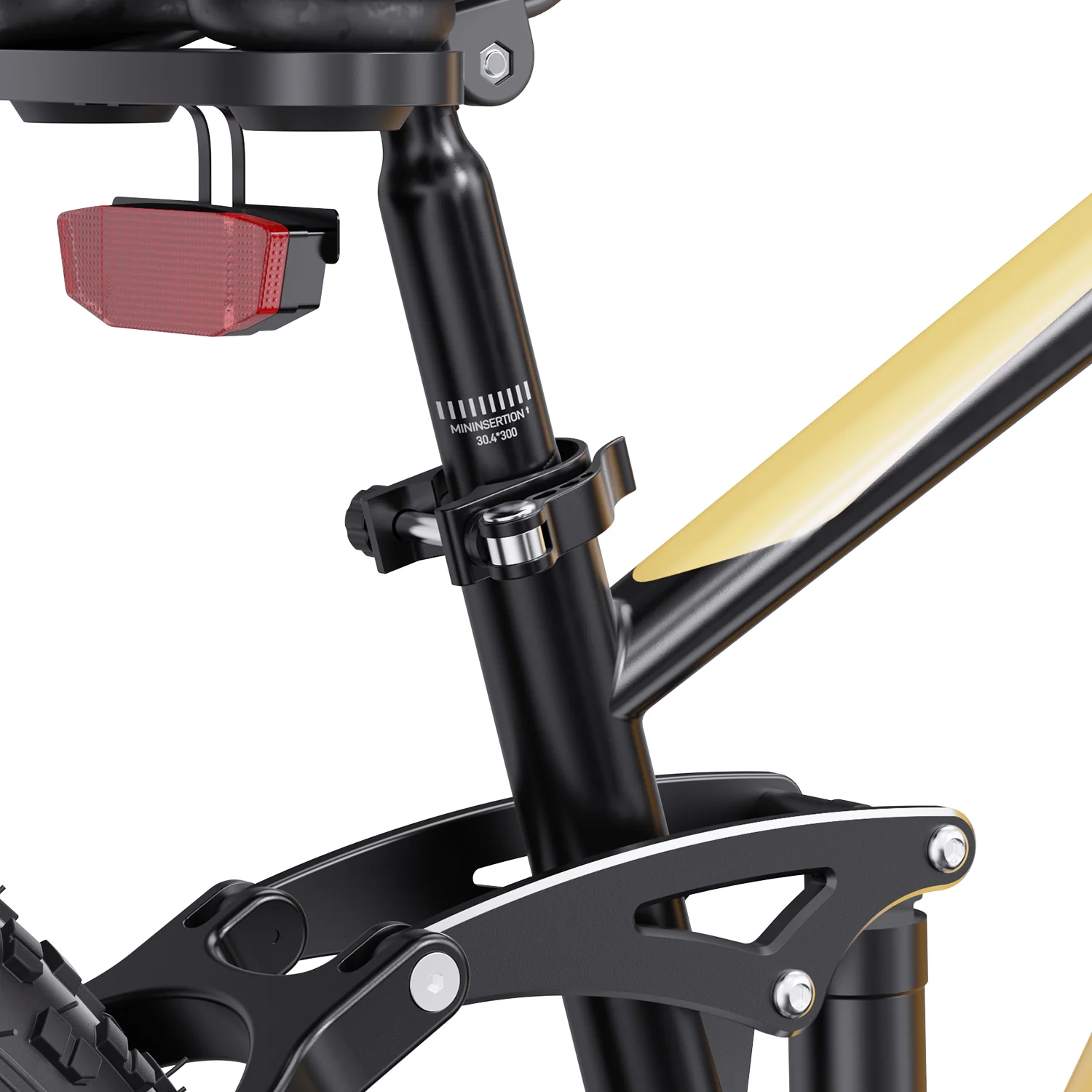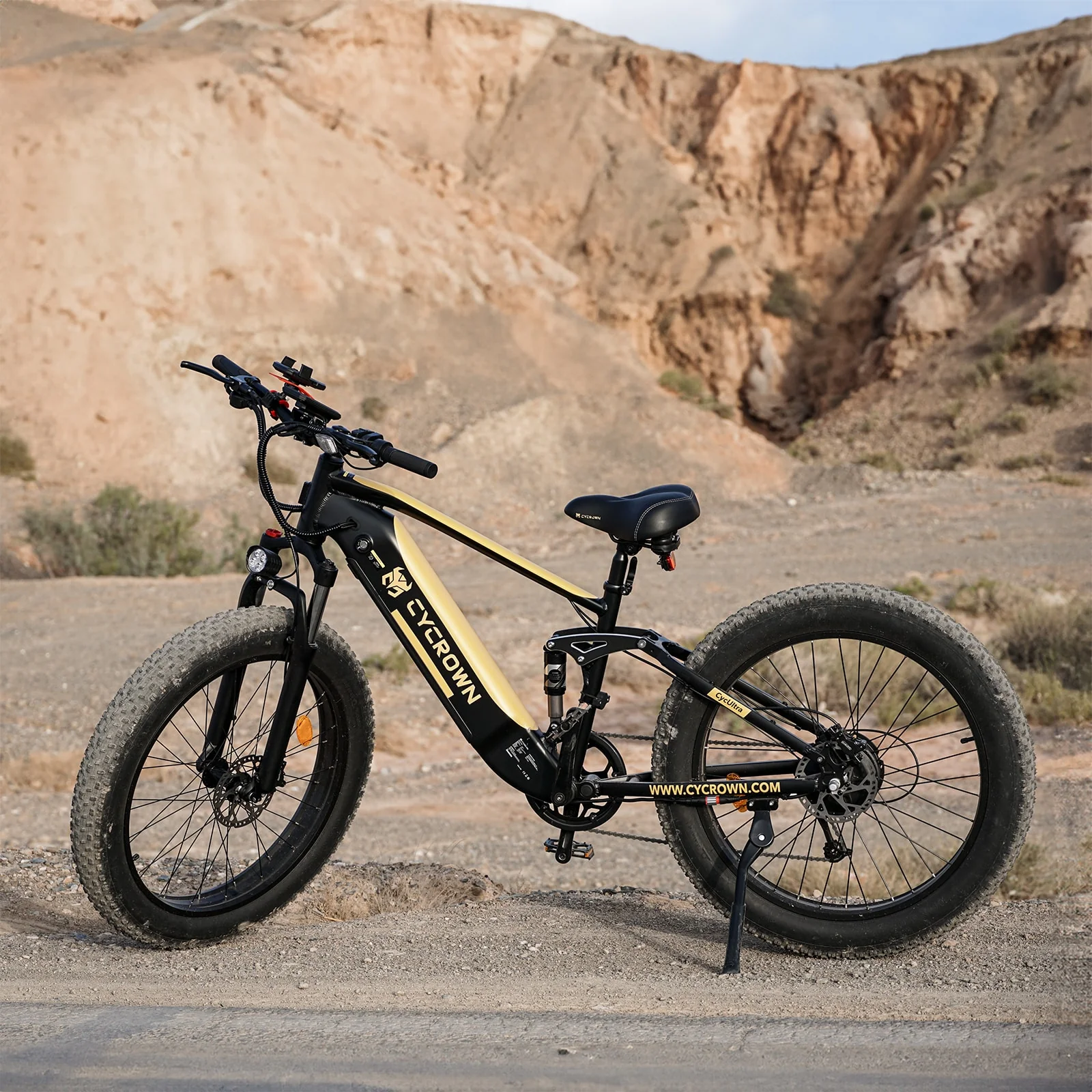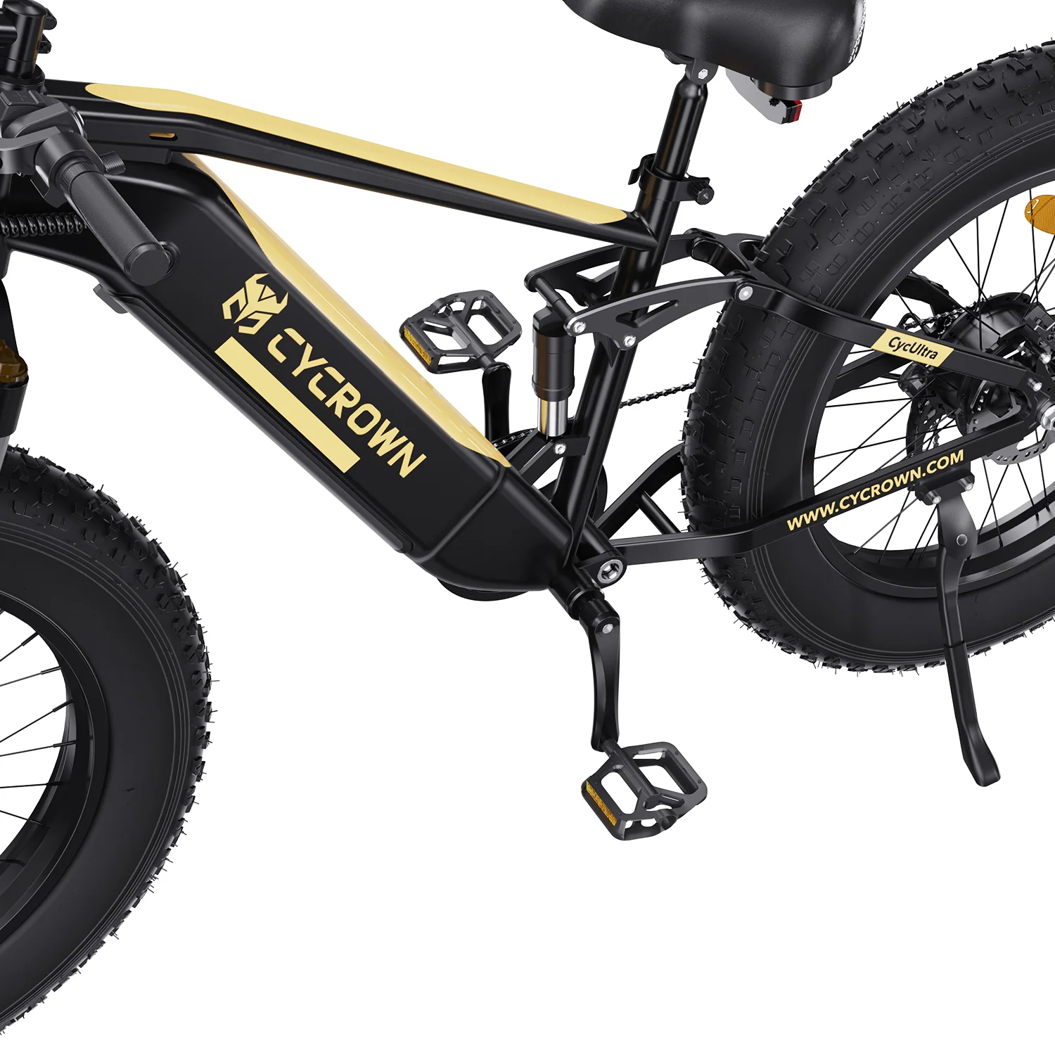 This alll terrain CycUltra electric bike with triple suspension, including Front suspension +Rear Suspension+Seat Post.