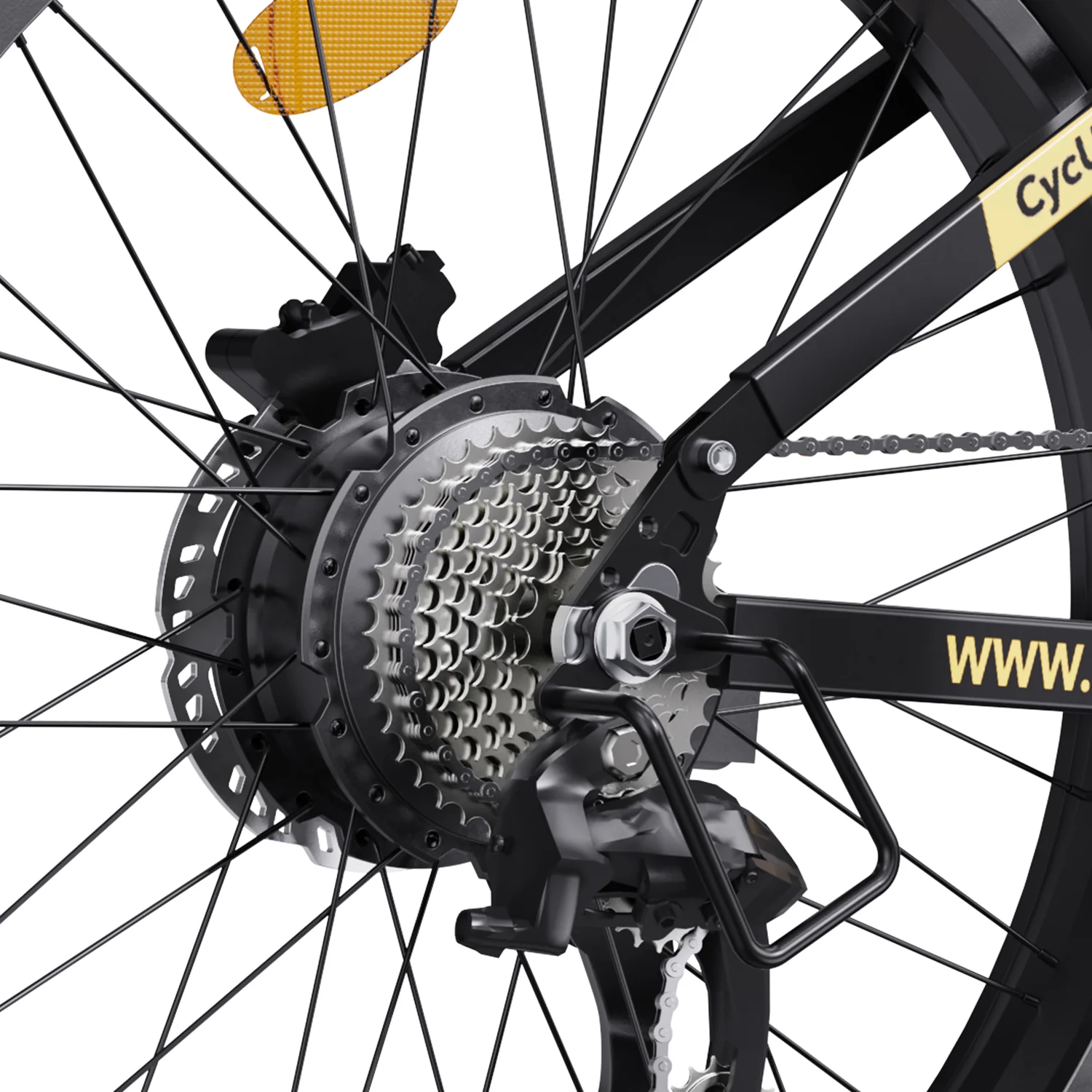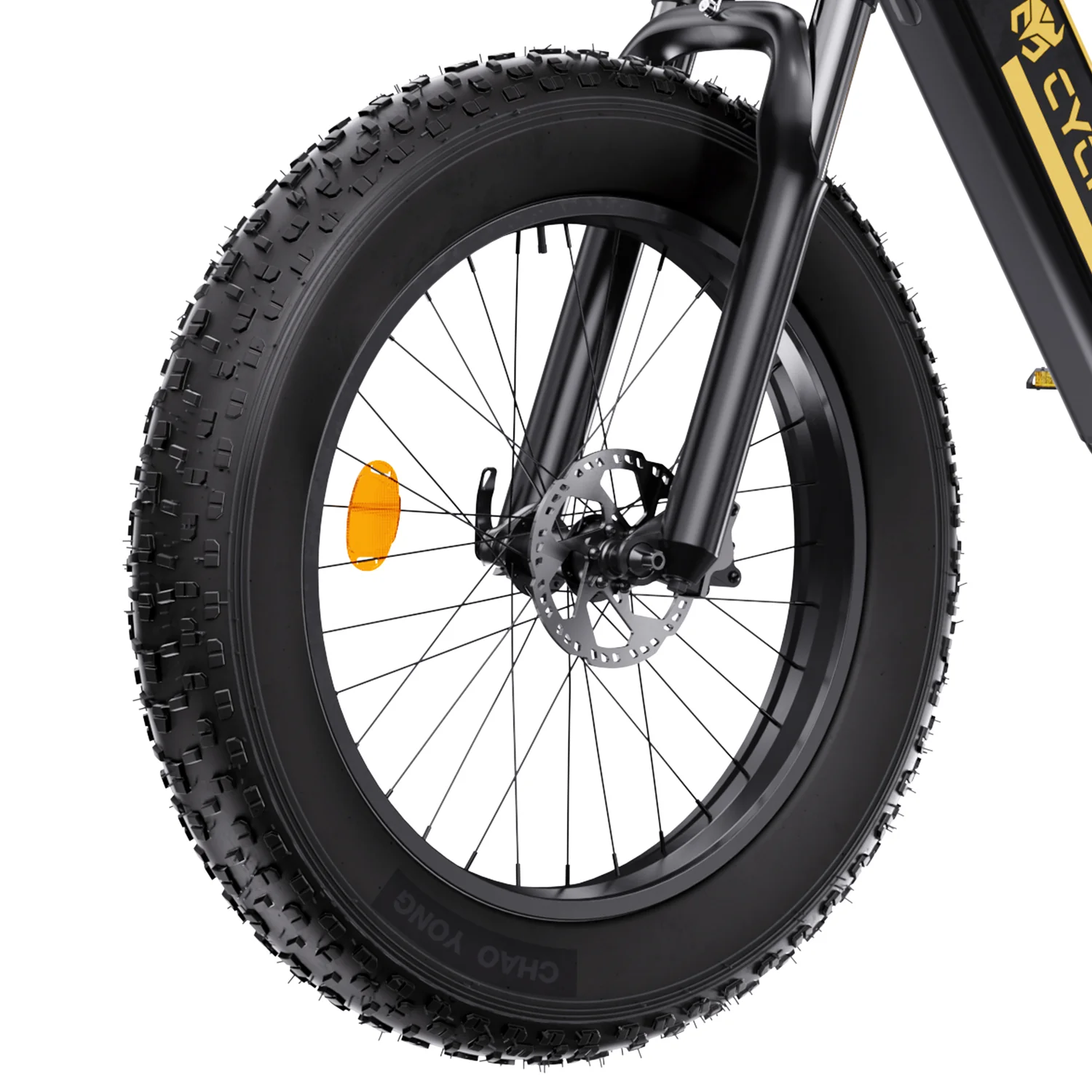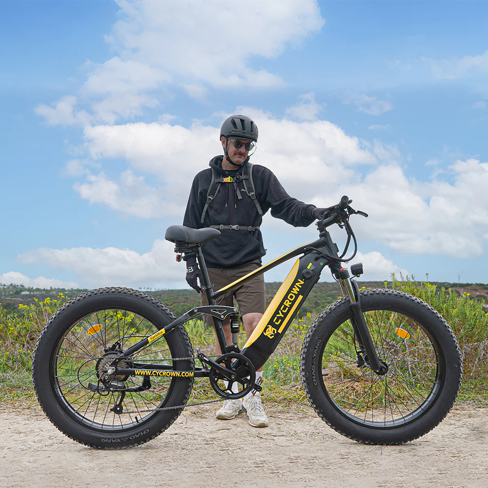 【Hydraulic Disc Brakes & Dual Suspension System】CycUltra fat tire ebike with lockable and adjustable dual shoulder front suspension downhill fork and rear suspension. Which absorbs shock and protect your joints while riding, giving you comfortable and safe experience.