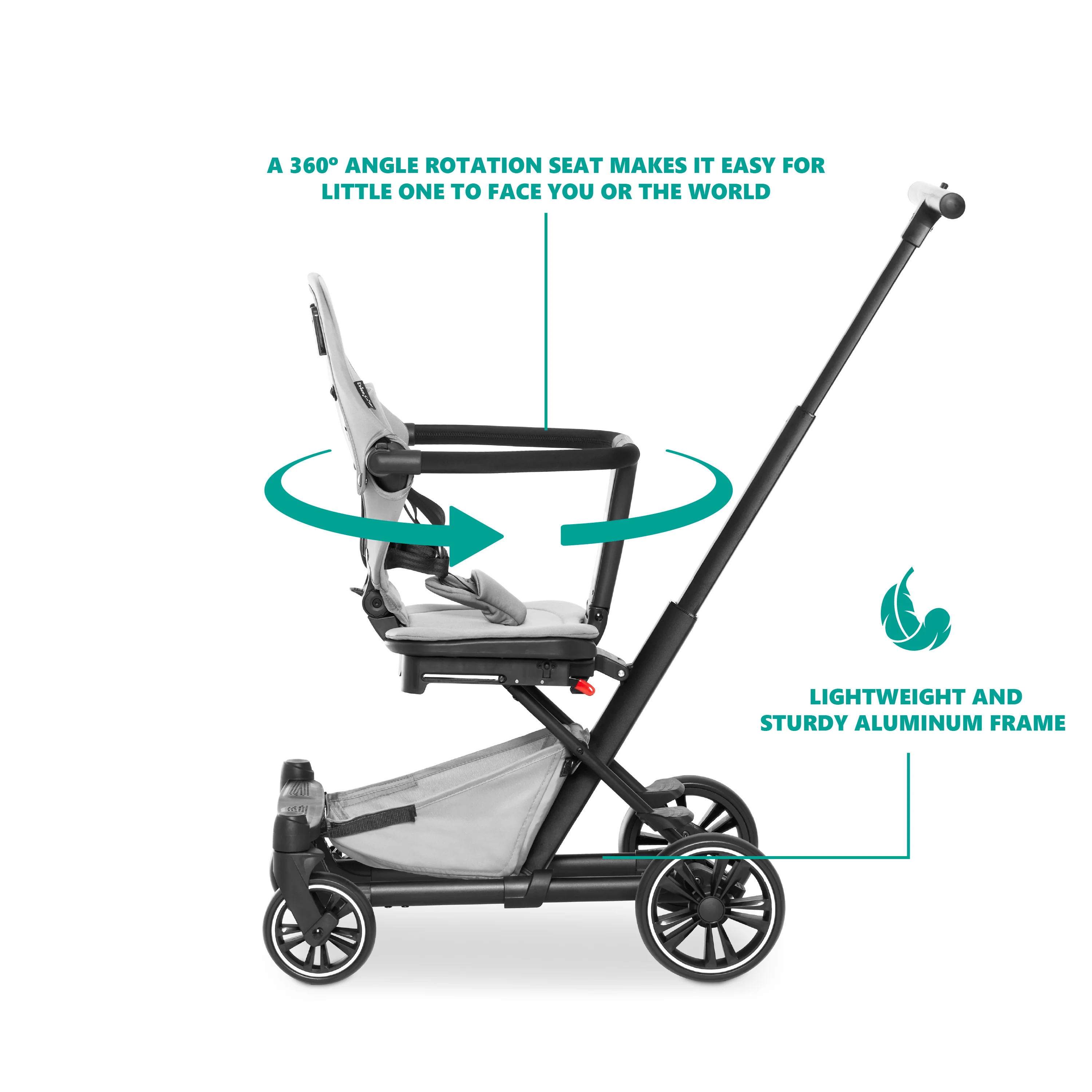 - The Drift Rider Stroller is sturdy and lightweight, comes with a 360-angle rotation seat for your little one, and can be folded with one hand.