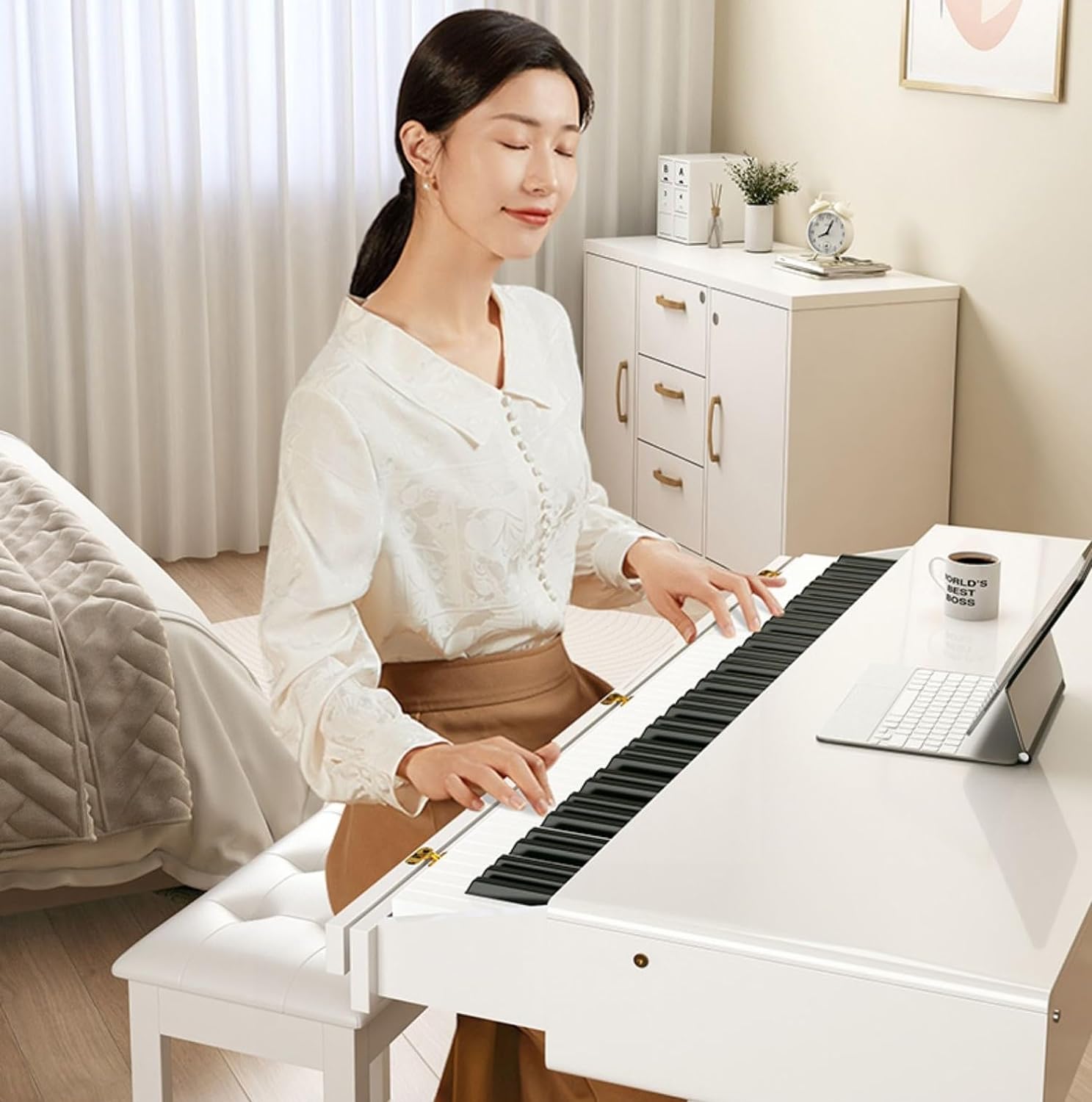 - 🎹【Beautiful Colors, With Accessories】Two colors available. Accessories: Multifunctional music stand.