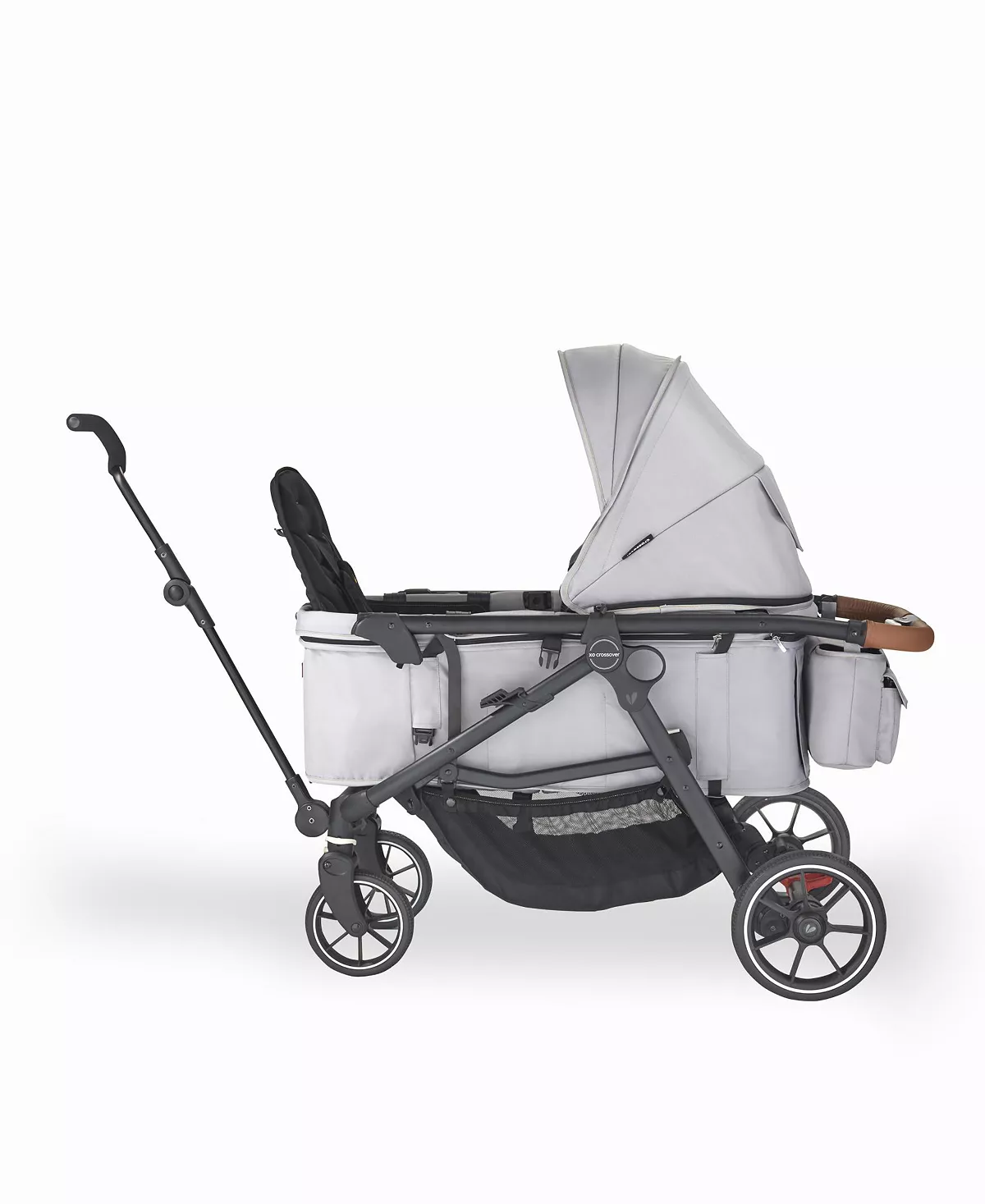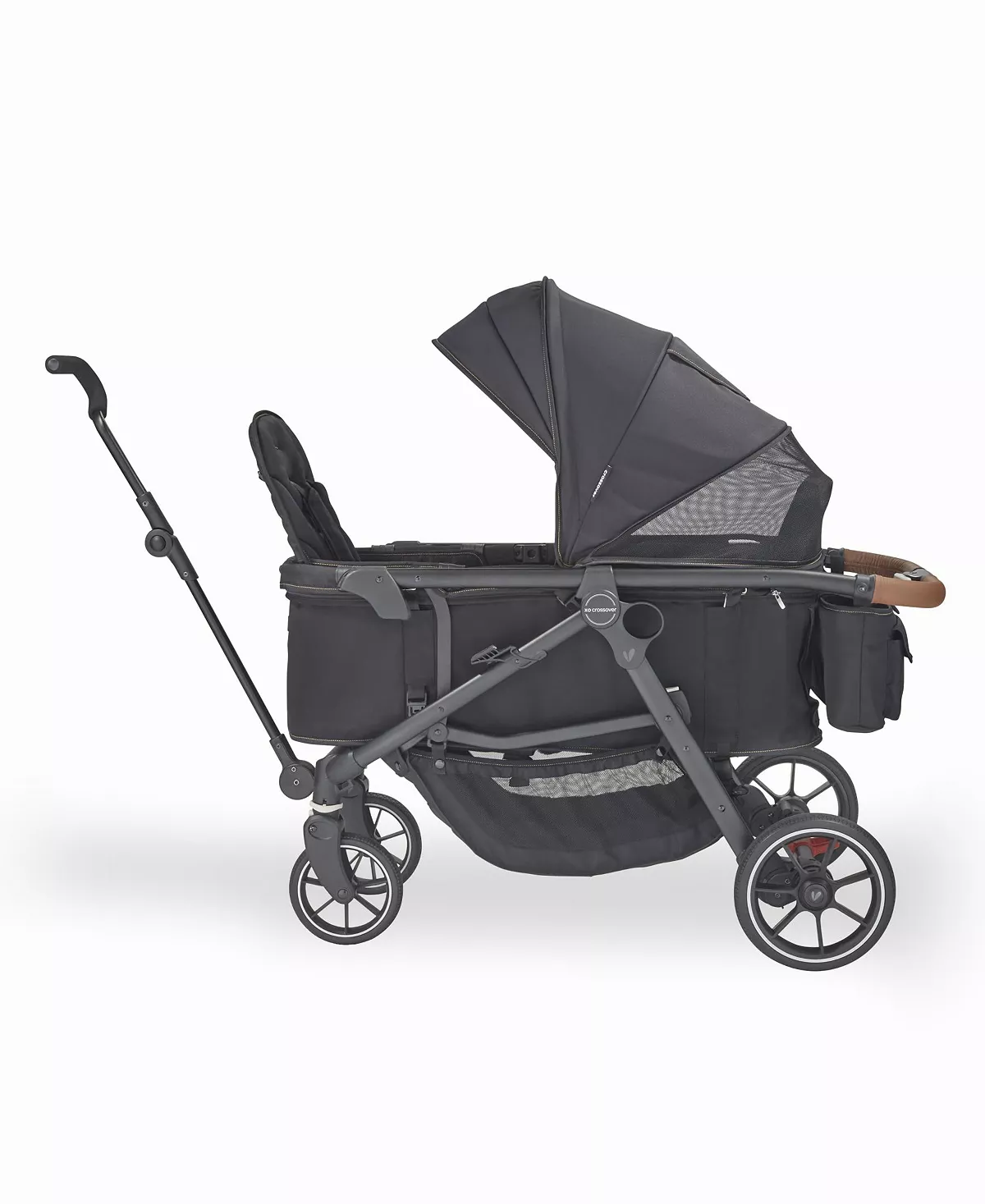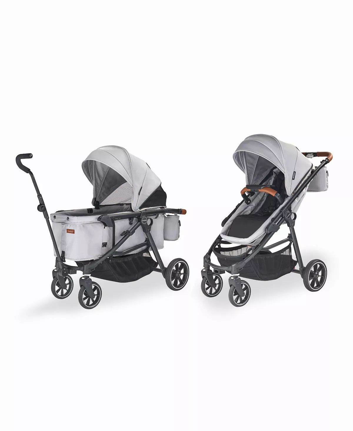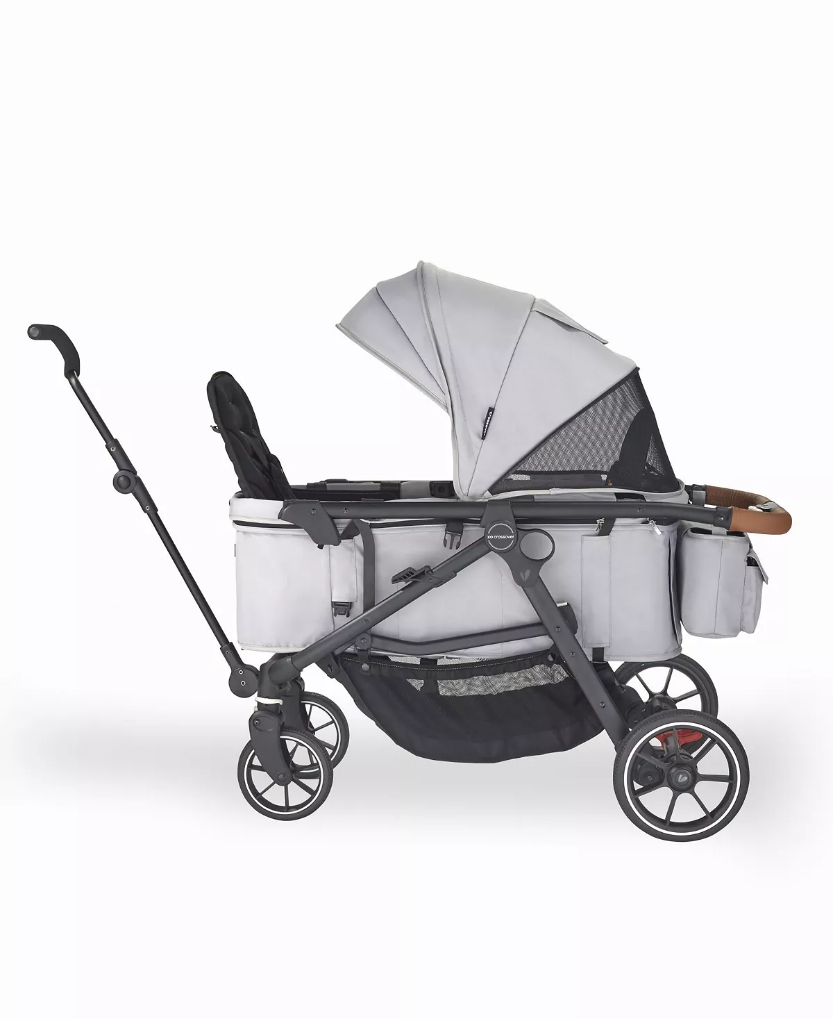 - Quality Meets Comfort: The crossover's parent-approved features include a fully reclining seat, bumper bar with snack tray in stroller mode, while wagon mode offers interior passenger pockets and a mesh cargo divider for storage. Adjustable in both modes, the sun canopy includes a pop-out visor, expandable mesh panel and peek-a-boo window with magnetic closures.