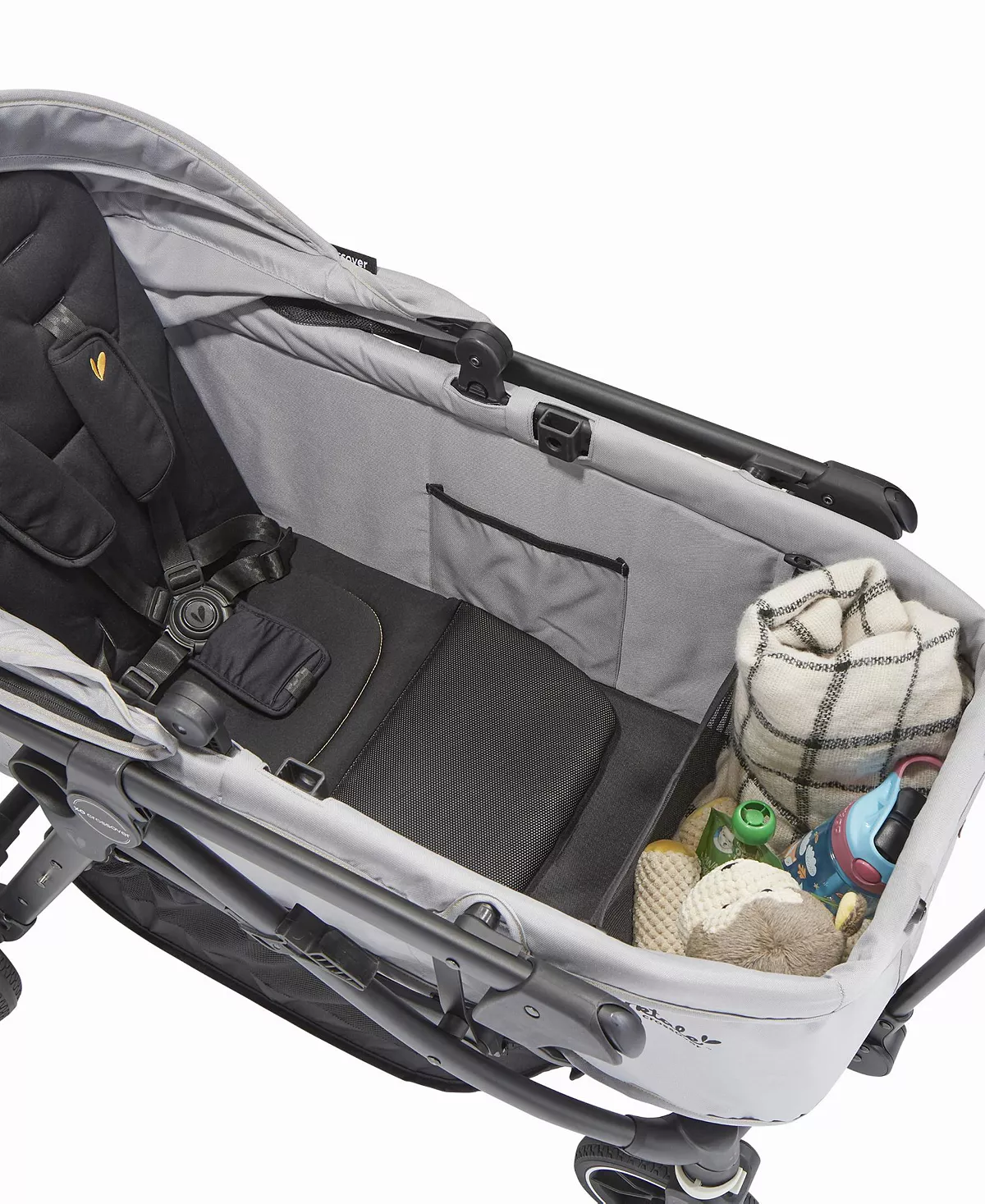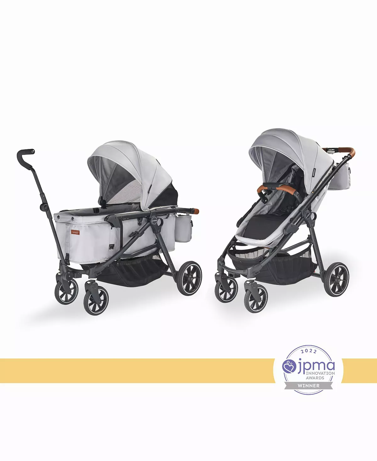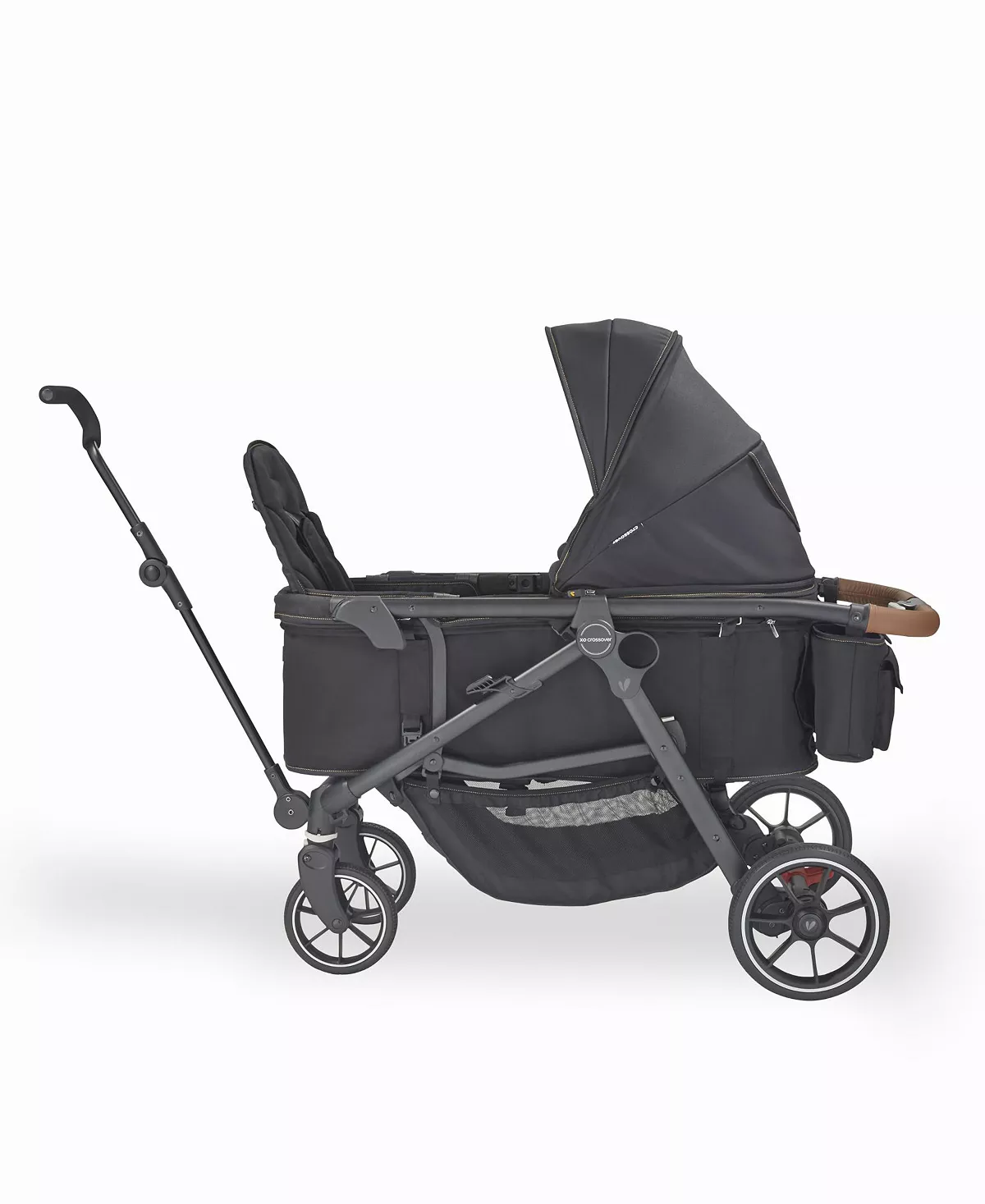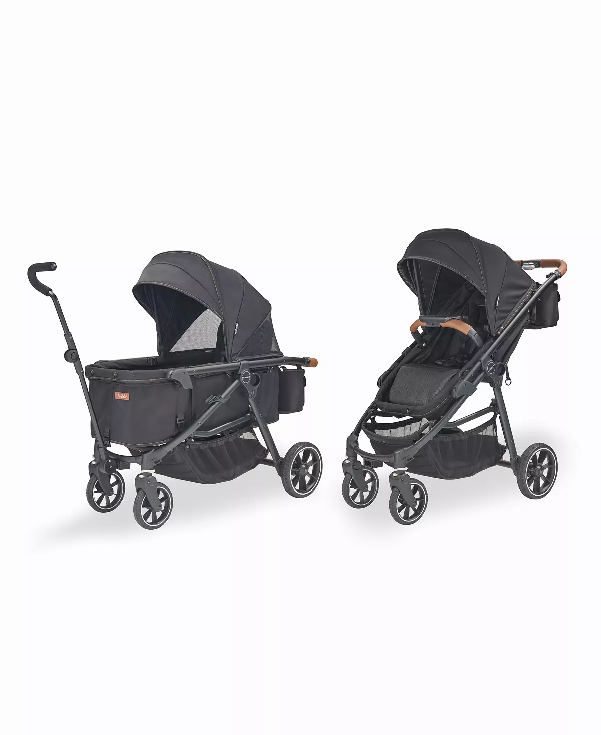 - Quality Meets Comfort: The crossover's parent-approved features include a fully reclining seat, bumper bar with snack tray in stroller mode, while wagon mode offers interior passenger pockets and a mesh cargo divider for storage. Adjustable in both modes, the sun canopy includes a pop-out visor, expandable mesh panel and peek-a-boo window with magnetic closures.