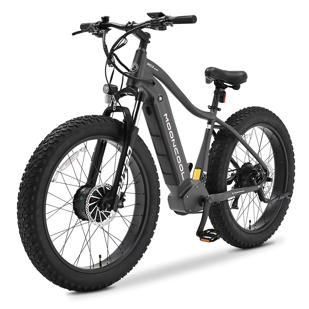 The powerful fat tire off-road e-bike equipped with 500W*2 motors and a 48V battery is the best for all terrains such as mountains, beaches, snow, and city roads.