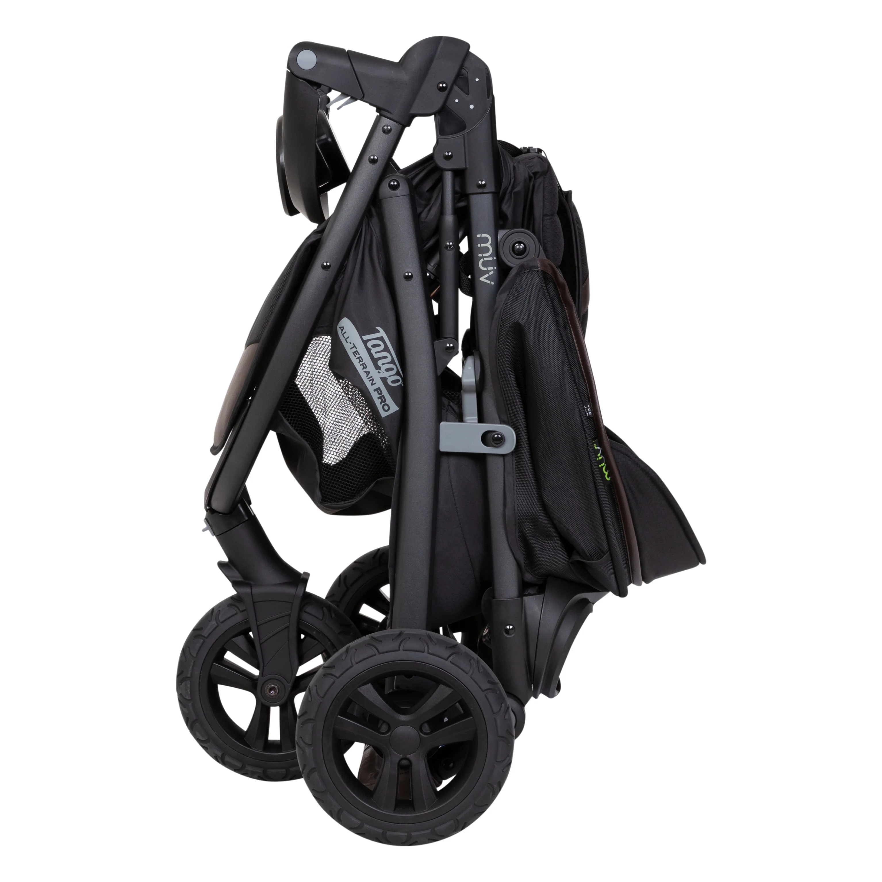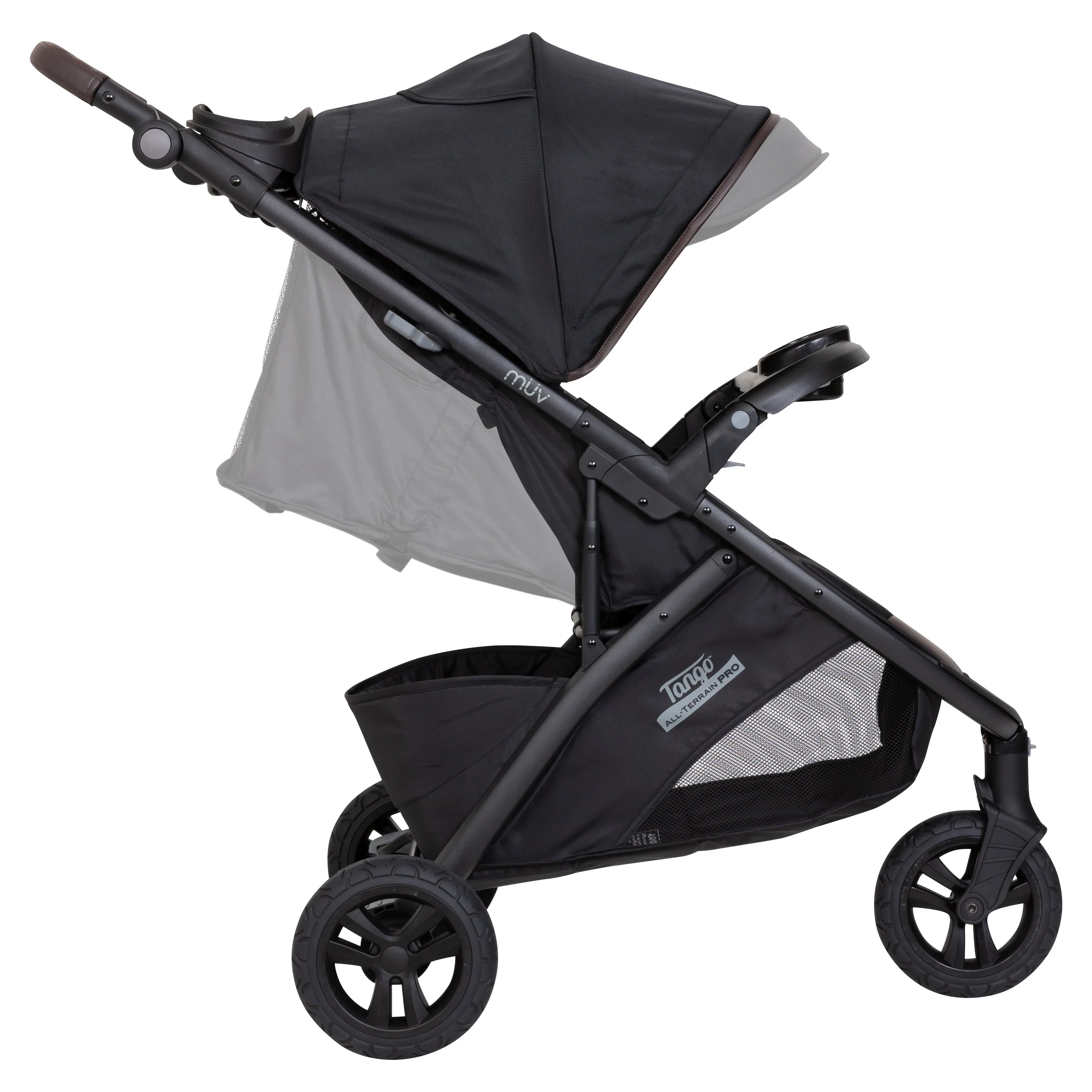 The Baby Trend® MUV Tango All-Terrain PRO Travel System offers you and your child a premium strolling and riding experience. Parents will love the height adjustable leather-like handlebar that gives comfortable grips. Leather cover can be removed and converted to rubber handle. Parents don’t need to worry about tire wear and tear; the MUV Tango All-Terrain PRO Stroller is designed with 8” thick rubber tires that provide incredible grips and maneuverability. The all-terrain rubber tires are lightweight and perfect for uneven surfaces and landscape.