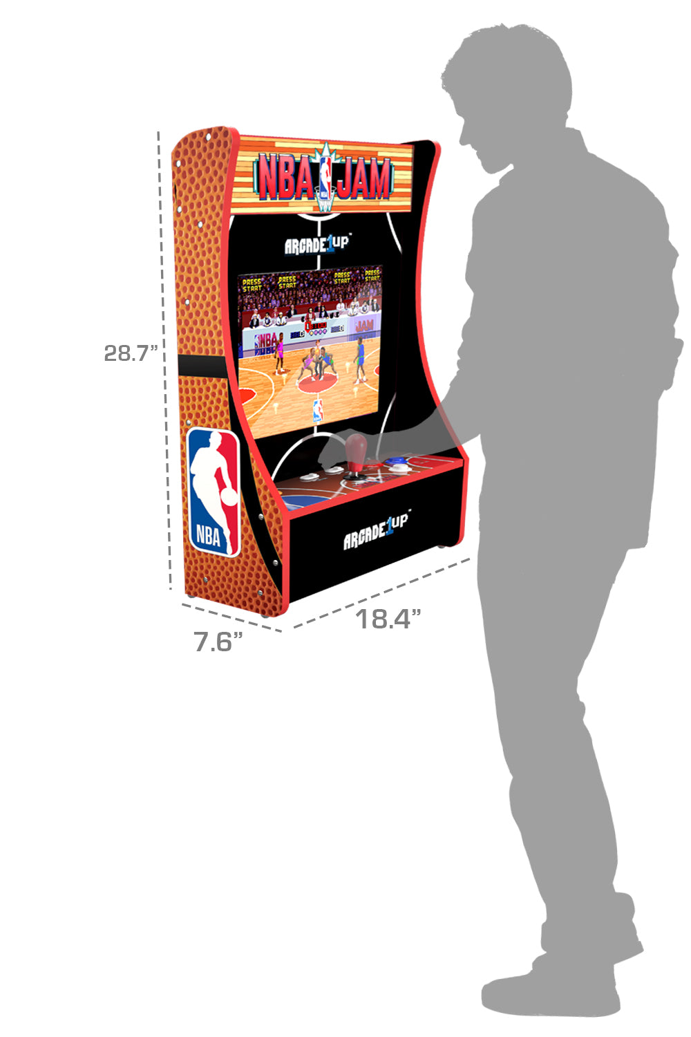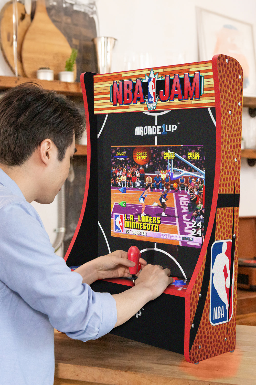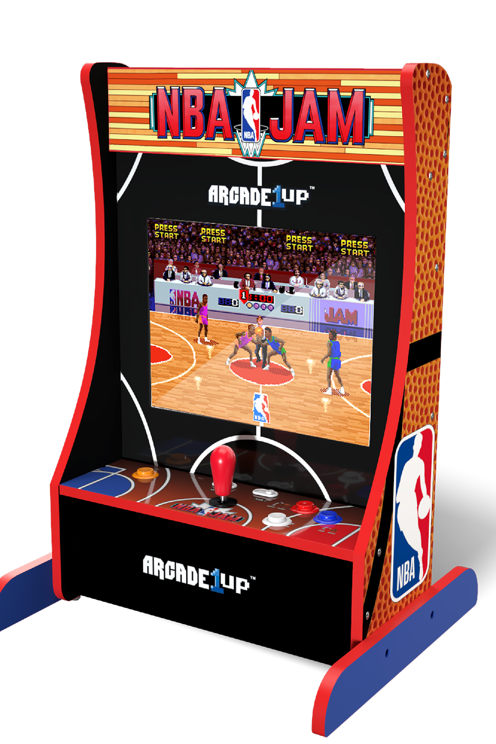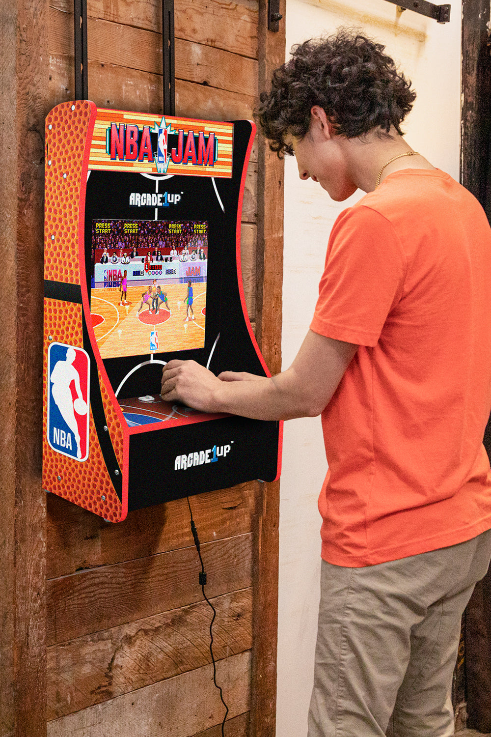 Experience the thrill of arcade basketball at home with the NBA Jam™ Partycade by Arcade1Up! This fully assembled machine comes with Door Hanger Wall Hanger and detachable legs attachments offering multiple setup options to suit your space.