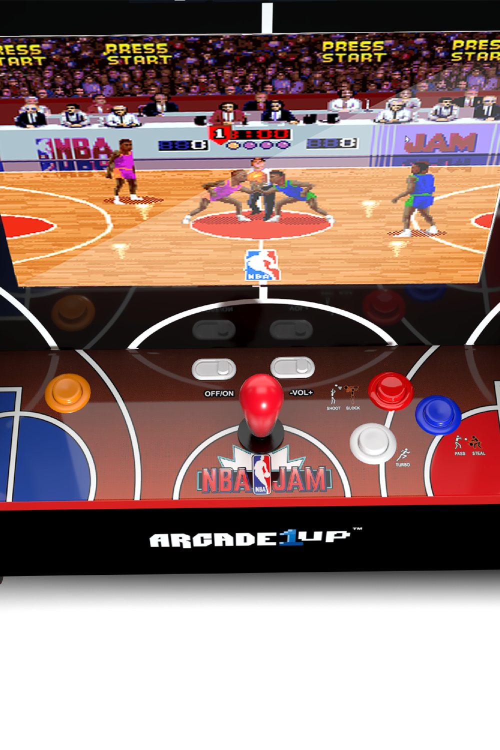 With its sleek design real-feel joystick and oversized buttons the NBA Jam™ Partycade delivers precise control and an immersive gaming experience. The 17-inch color display brings the vibrant graphics to life making you feel like an actual basketball superstar. Take your skills to the next level and showcase your basketball prowess.