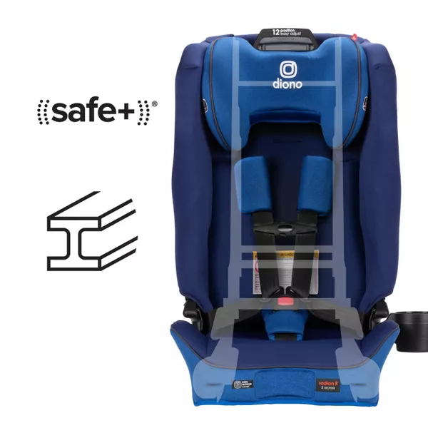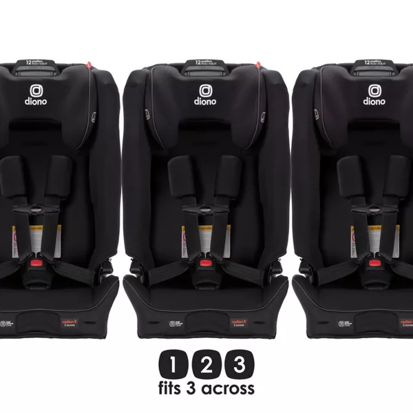 12 UPGRADES FROM RADIAN® 3R® - Includes SafePlus™ Easy-Adjust 12 Position Headrest, Improved Side Impact Protection and SafePlus™ testing. SAFEPLUS™ 12-POSITION HEADREST - Easy-adjust 12-Position headrest brand-new to 3R®, increasing occupancy space as child grows. SAFEPLUS™ ENGINEERING - Features a unique combination of engineering features and testing to the highest safety standards to ensure we have the safest seat possible. 10 YEARS ONE CAR SEAT - From rear-facing to forward-facing Radian® 3R® SafePlus™ adapts as your child grows from birth to booster. Now suitable from 4 - 120 lb. THE ORIGINAL RADIAN 3 ACROSS - Built with our famous Radian® slim fit convertible design for a 3-across option only with Diono® Radian® combinations without compromising child or passenger comfort. Feel safe having your children secure in the backseat