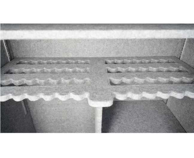 - Carpeted interior with adjustable shelving