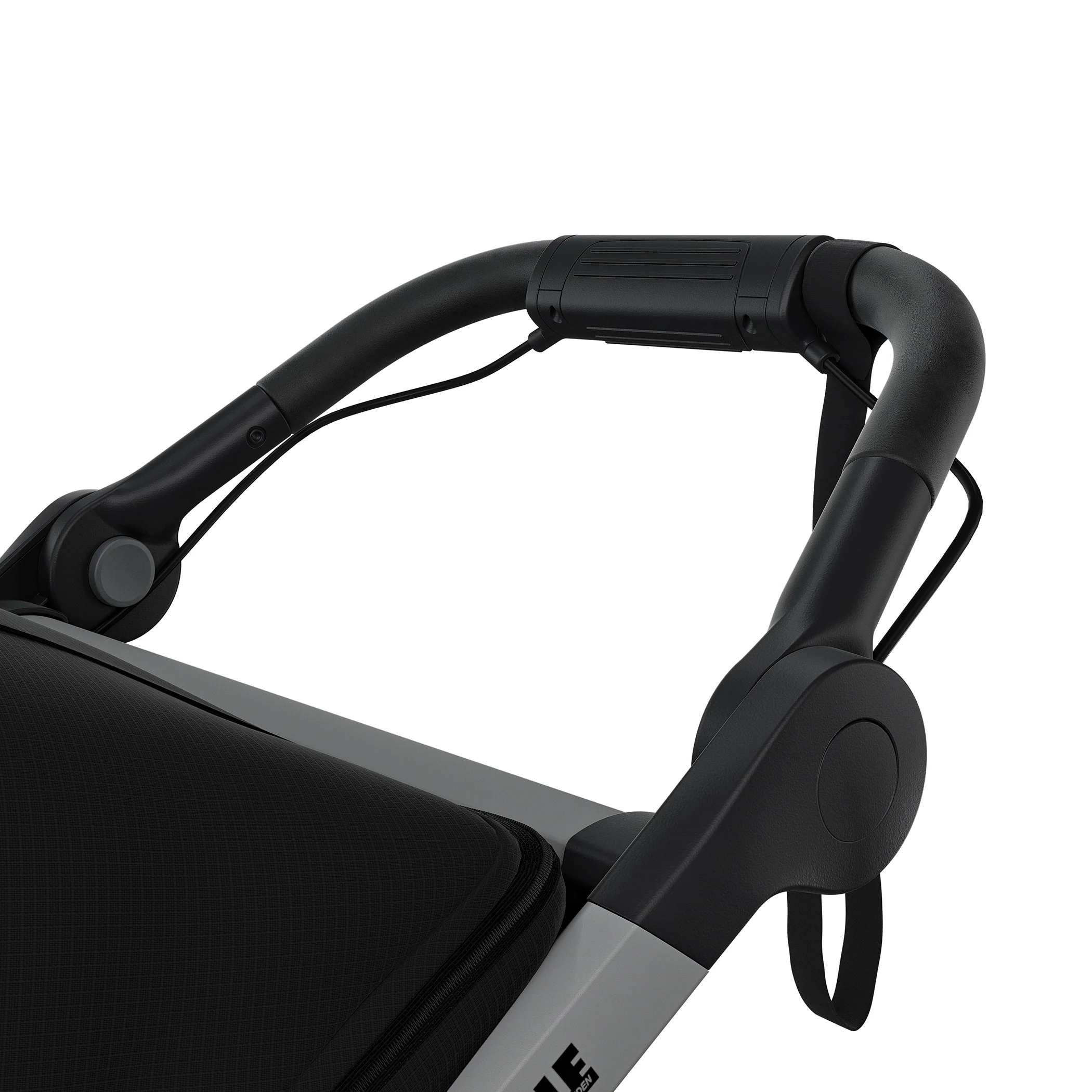 - Ergonomic, adjustable handlebar for maximum parent comfort