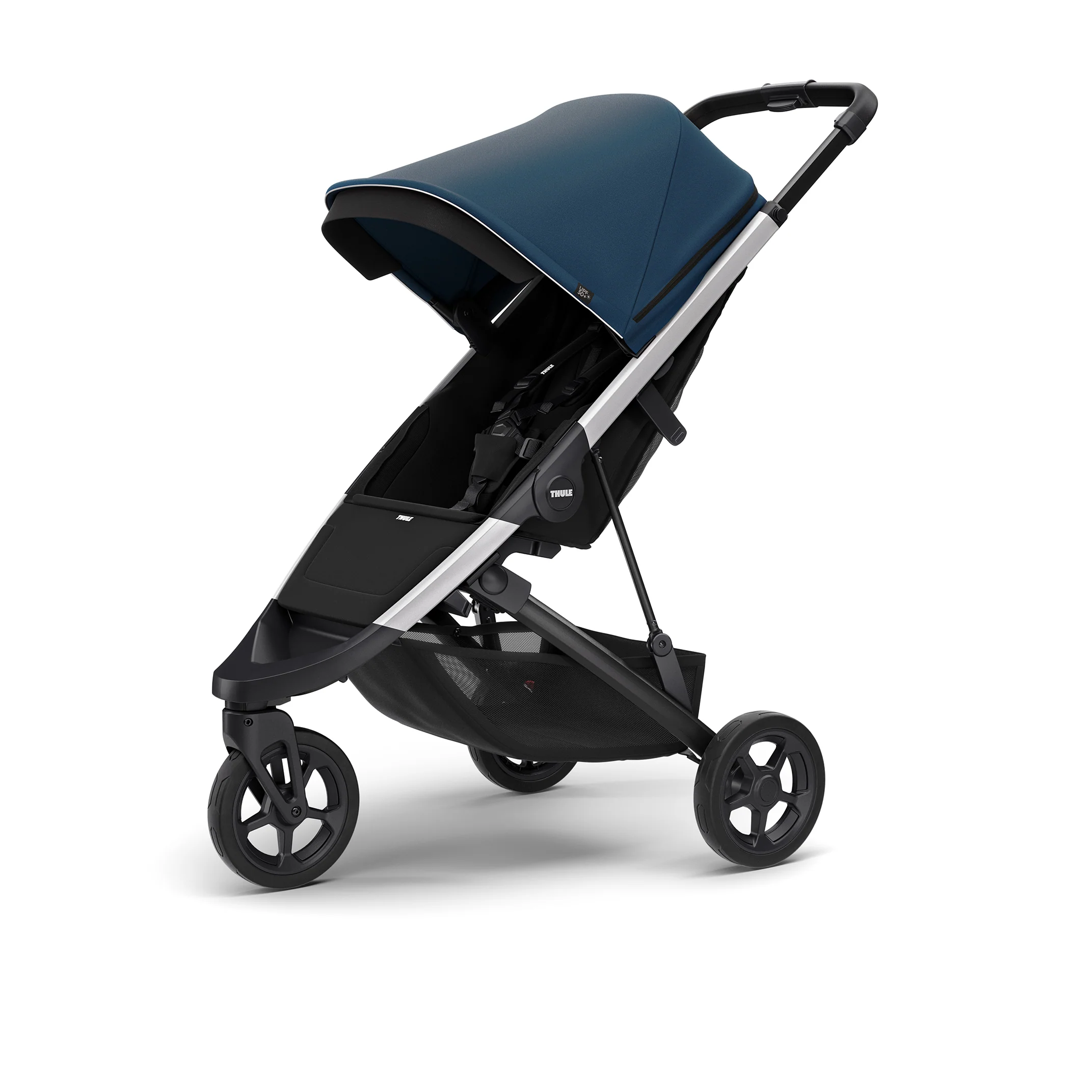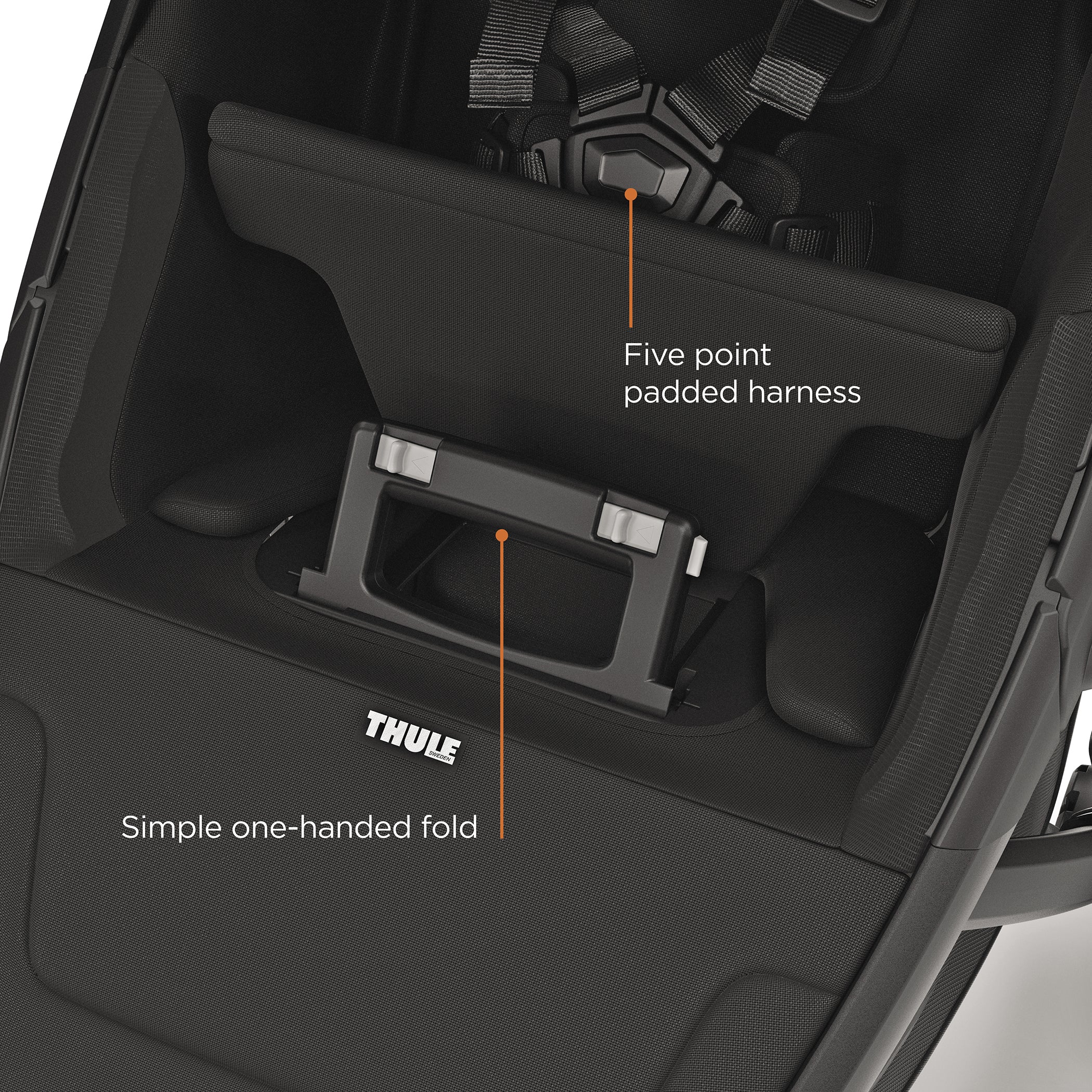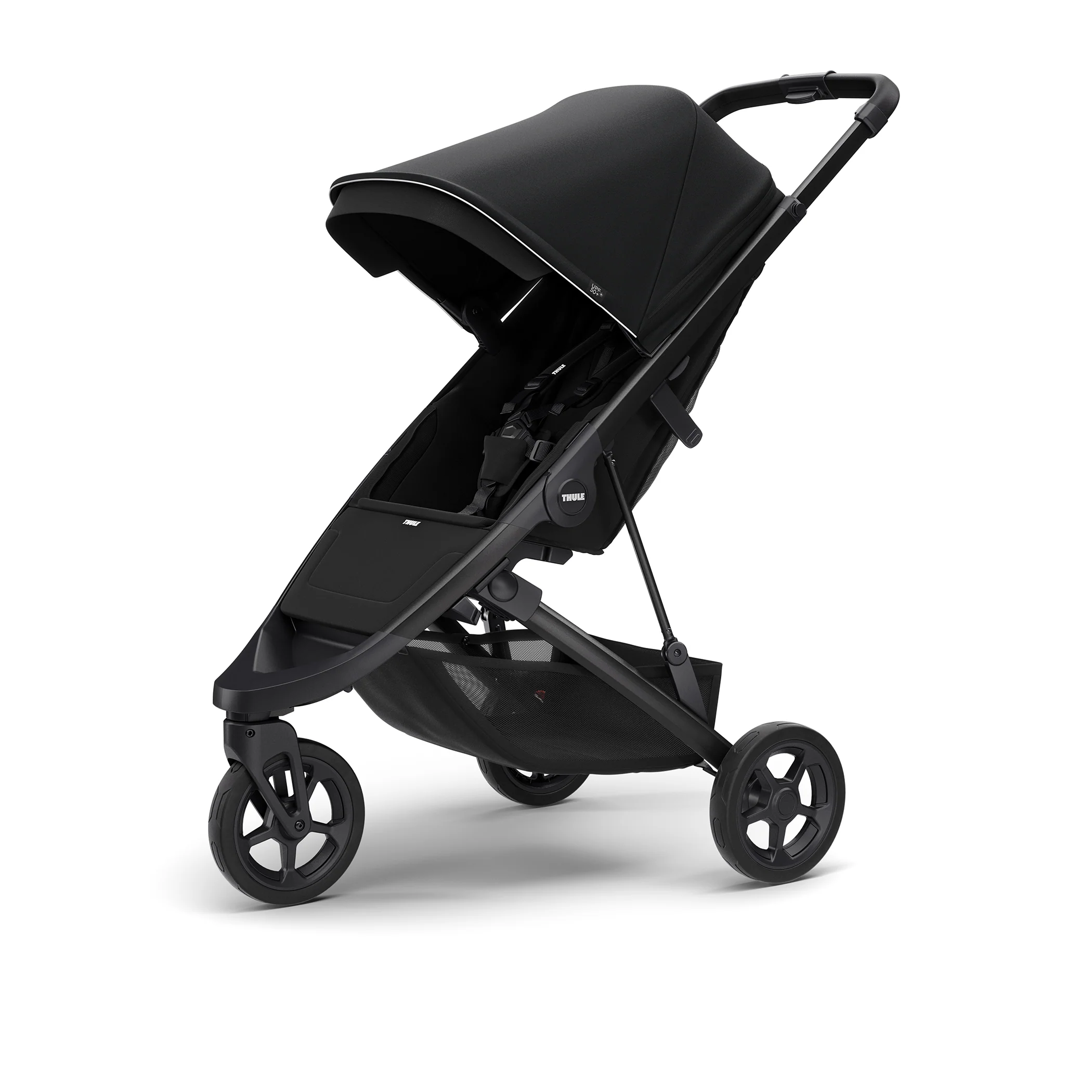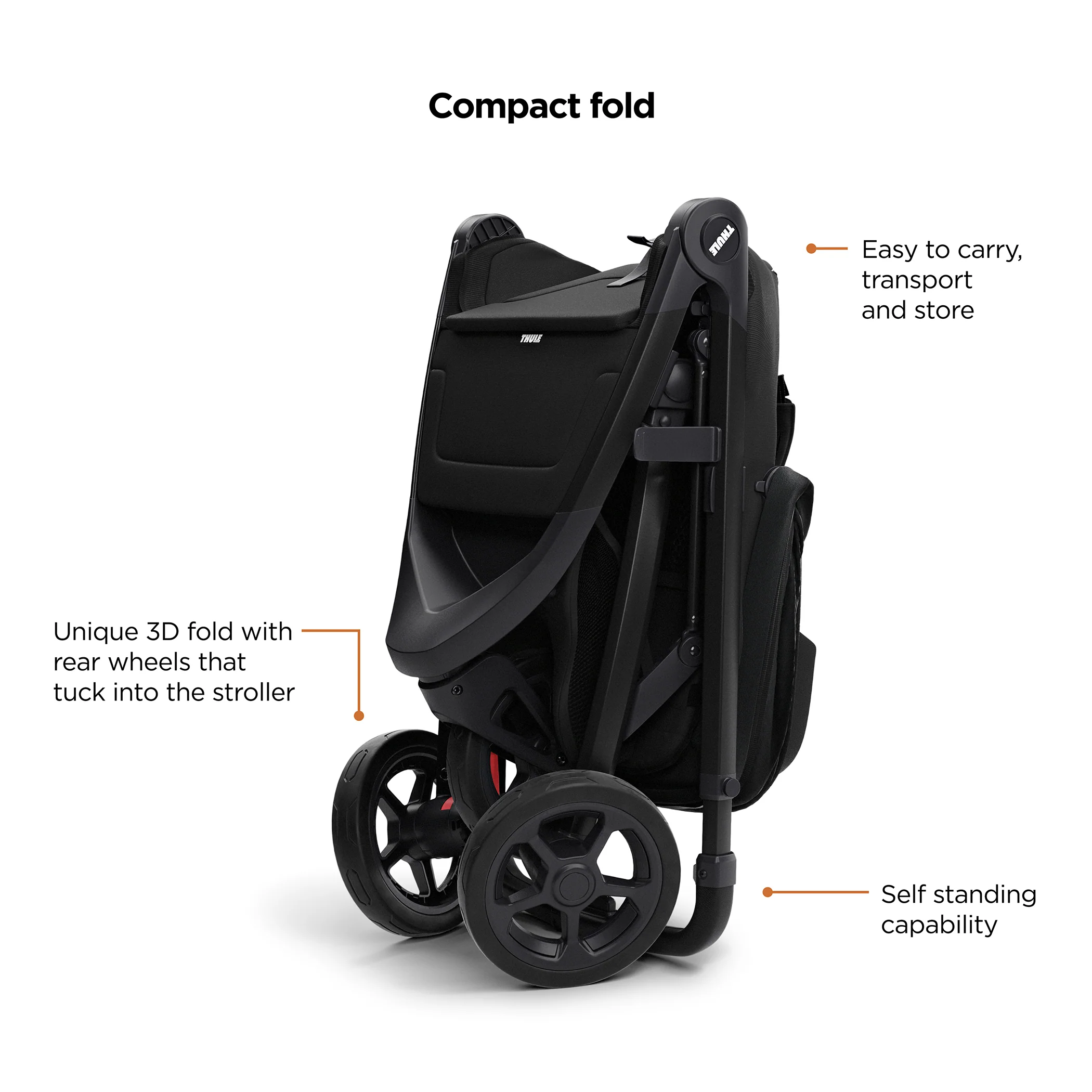The Thule Spring Stroller represents easy strolling, easy living in a premium, compact 3-wheel stroller for all day, everyday use. Offering excellent maneuverability for the city and an easy one-hand fast, compact fold and self-standing capability.