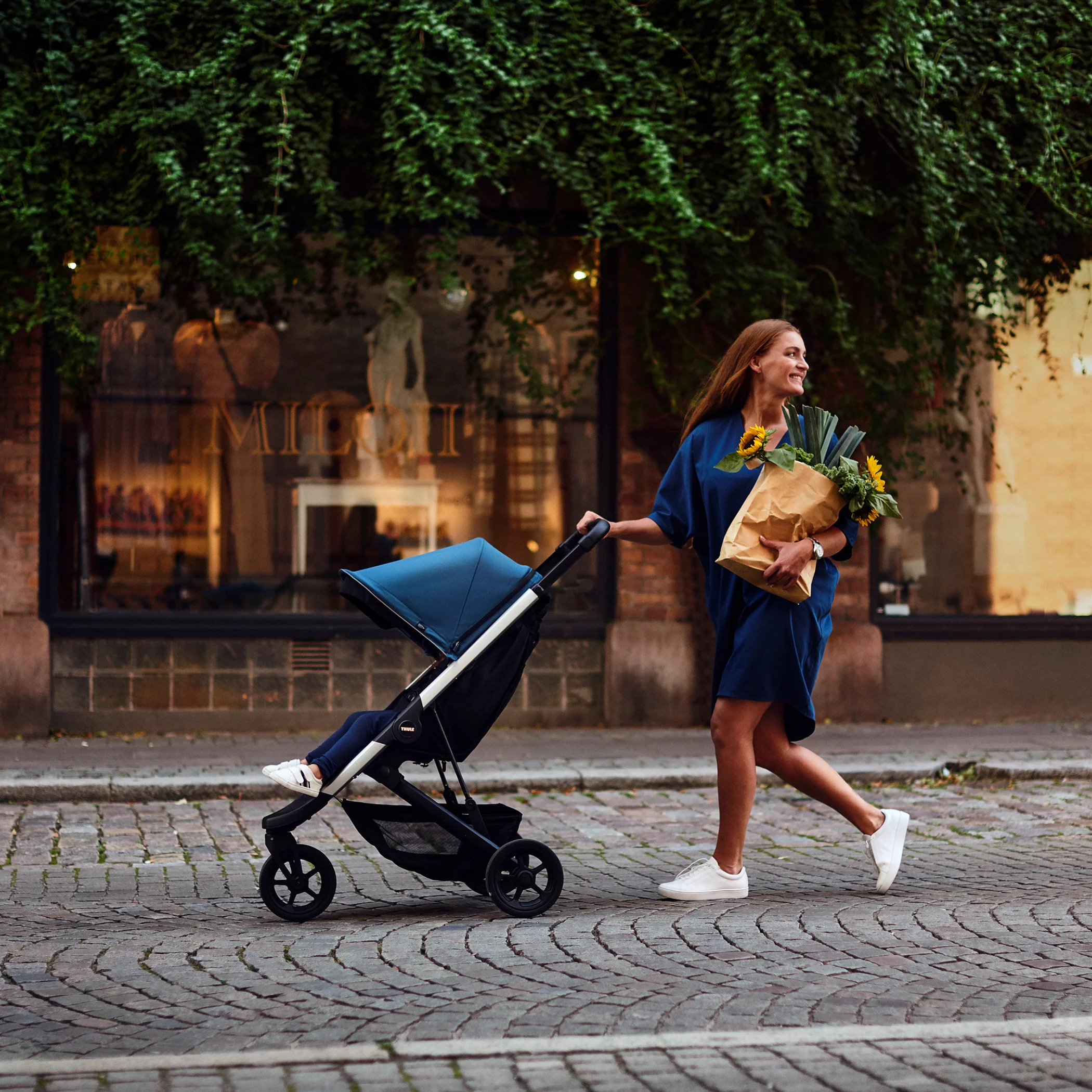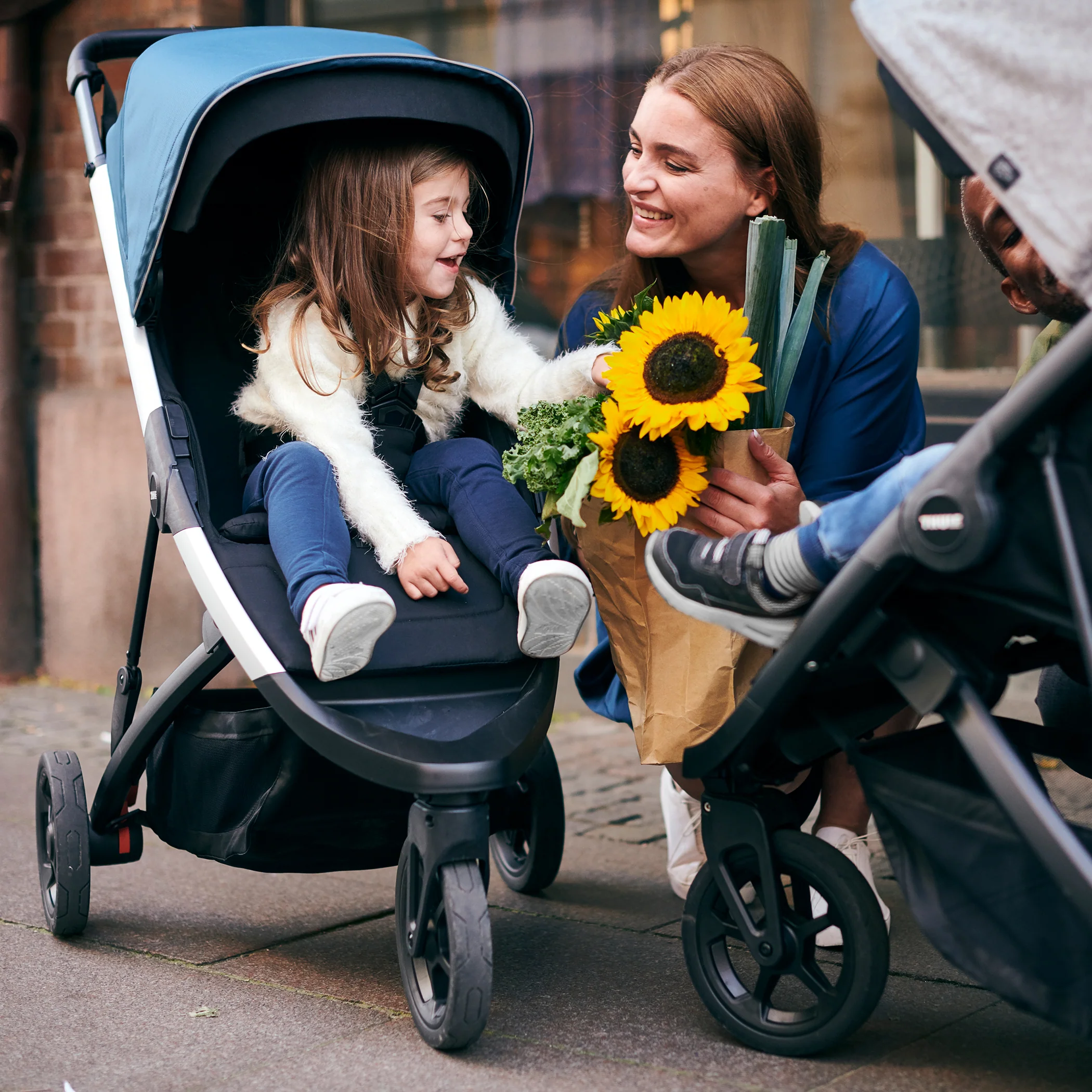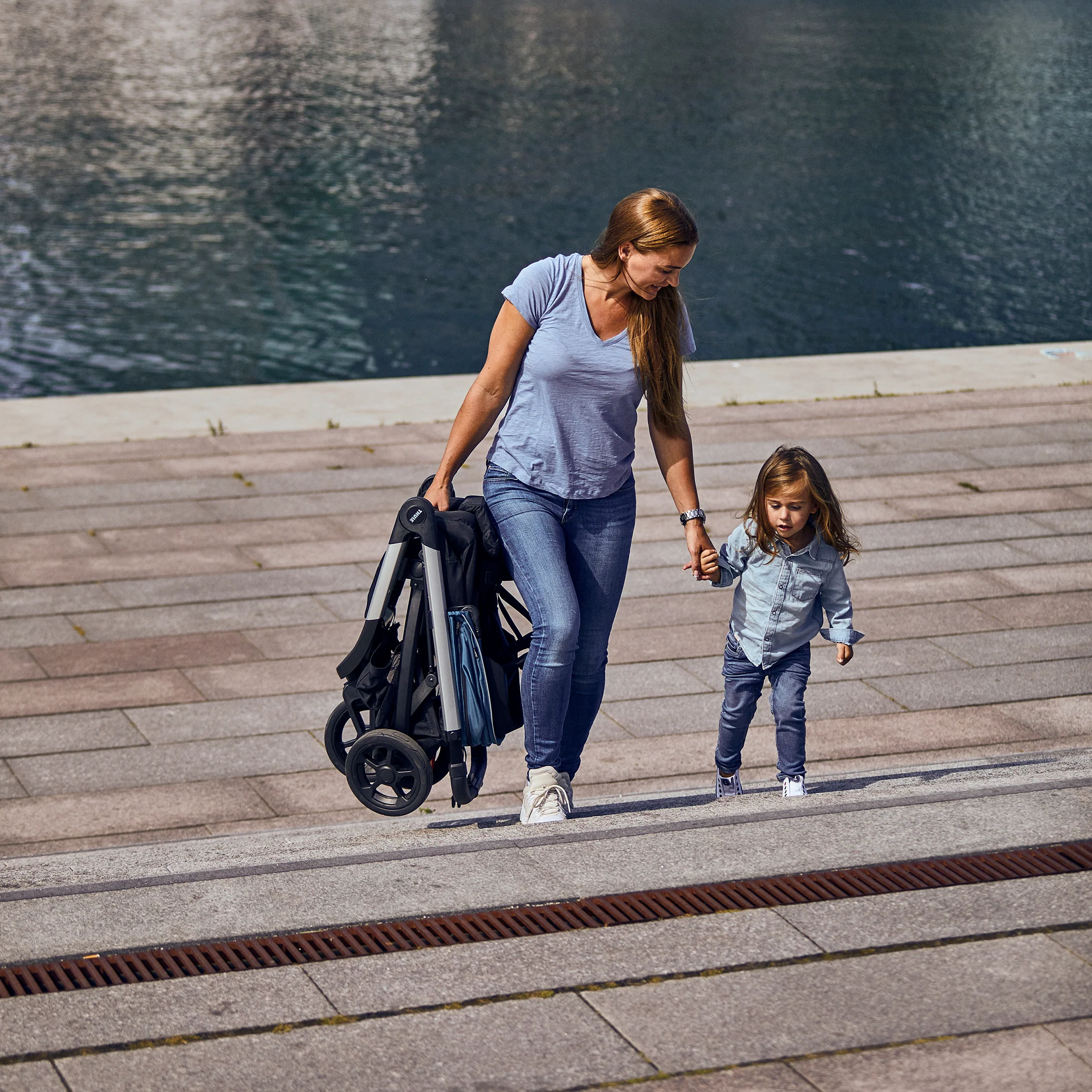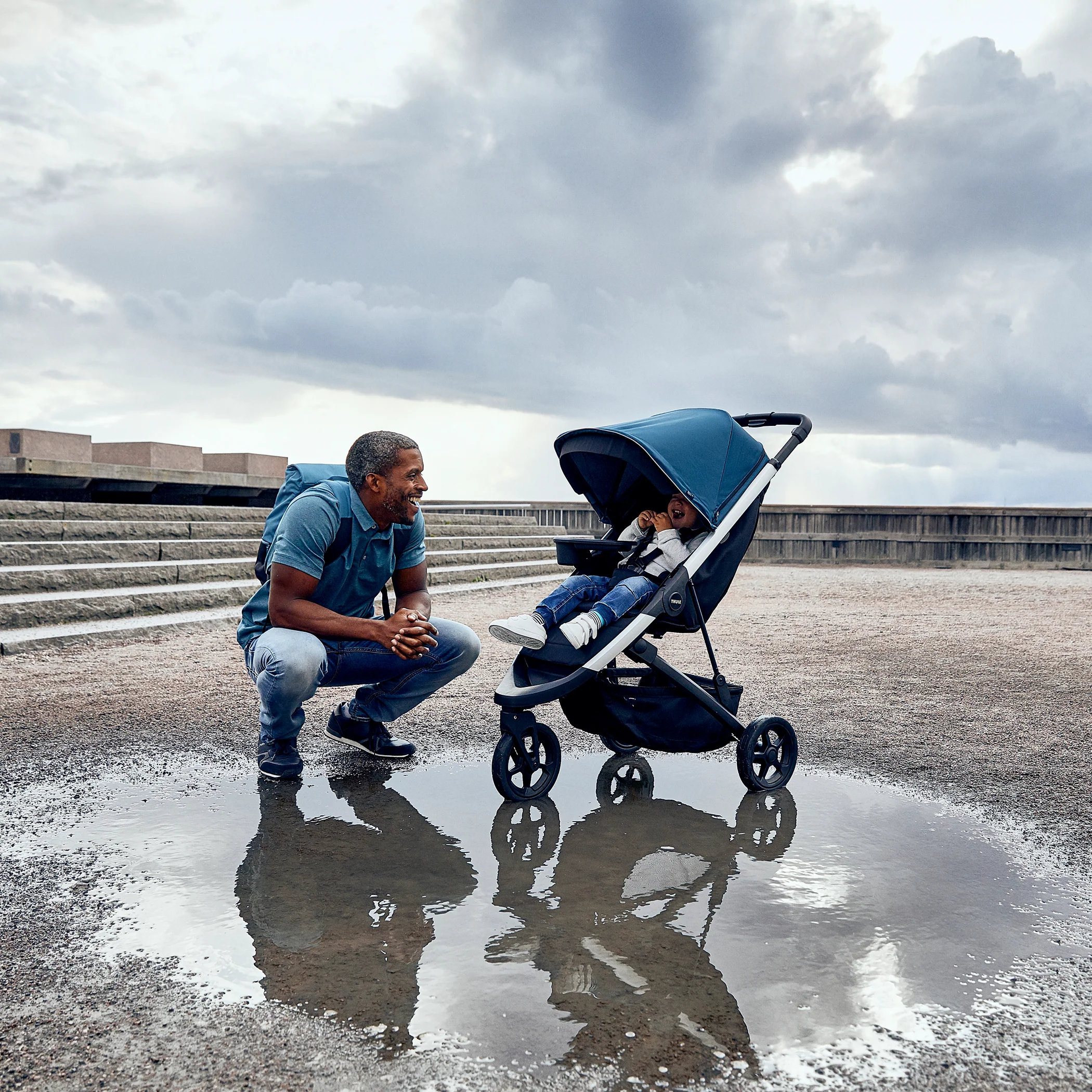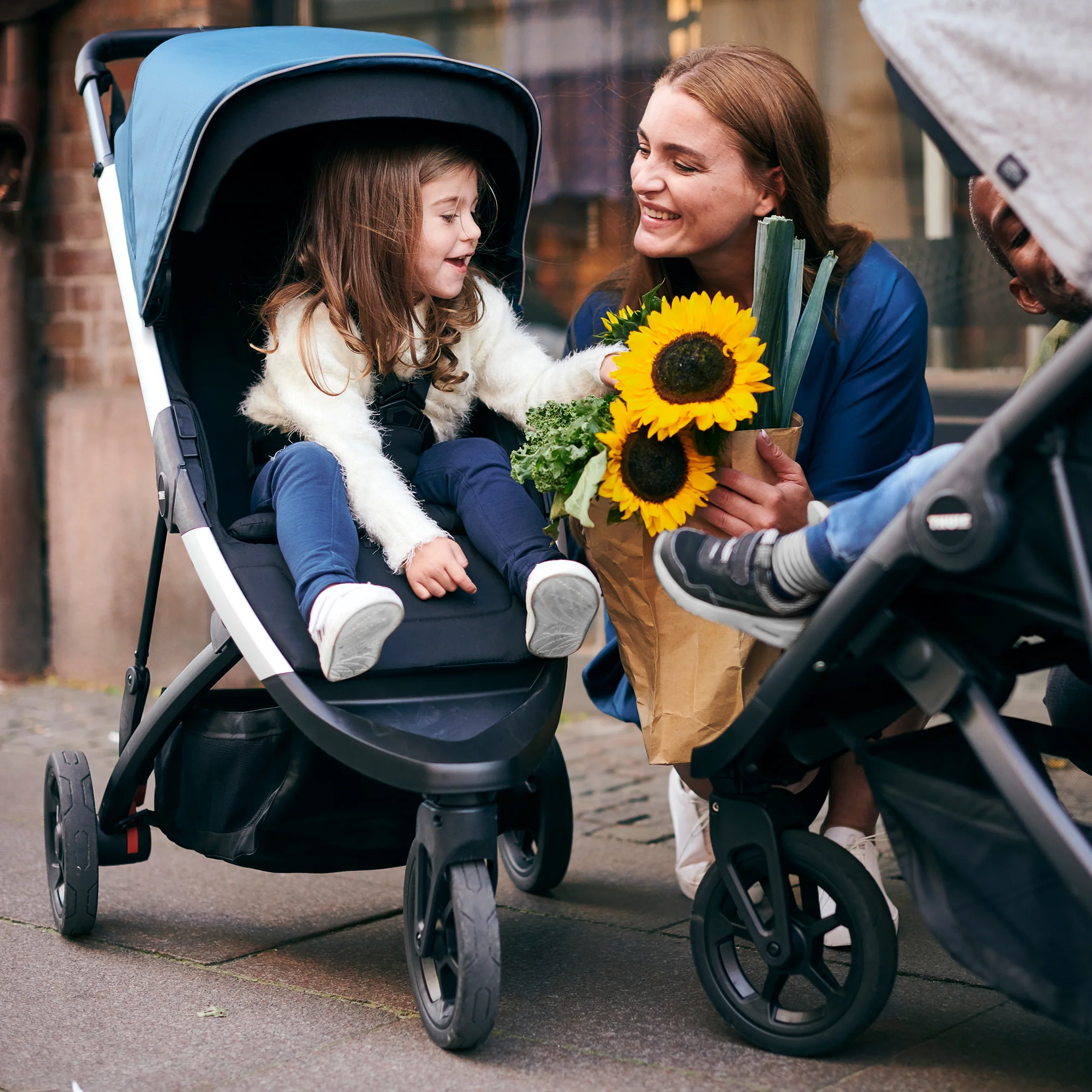 The Thule Spring Stroller represents easy strolling, easy living in a premium, compact 3-wheel stroller for all day, everyday use. Offering excellent maneuverability for the city and an easy one-hand fast, compact fold and self-standing capability.