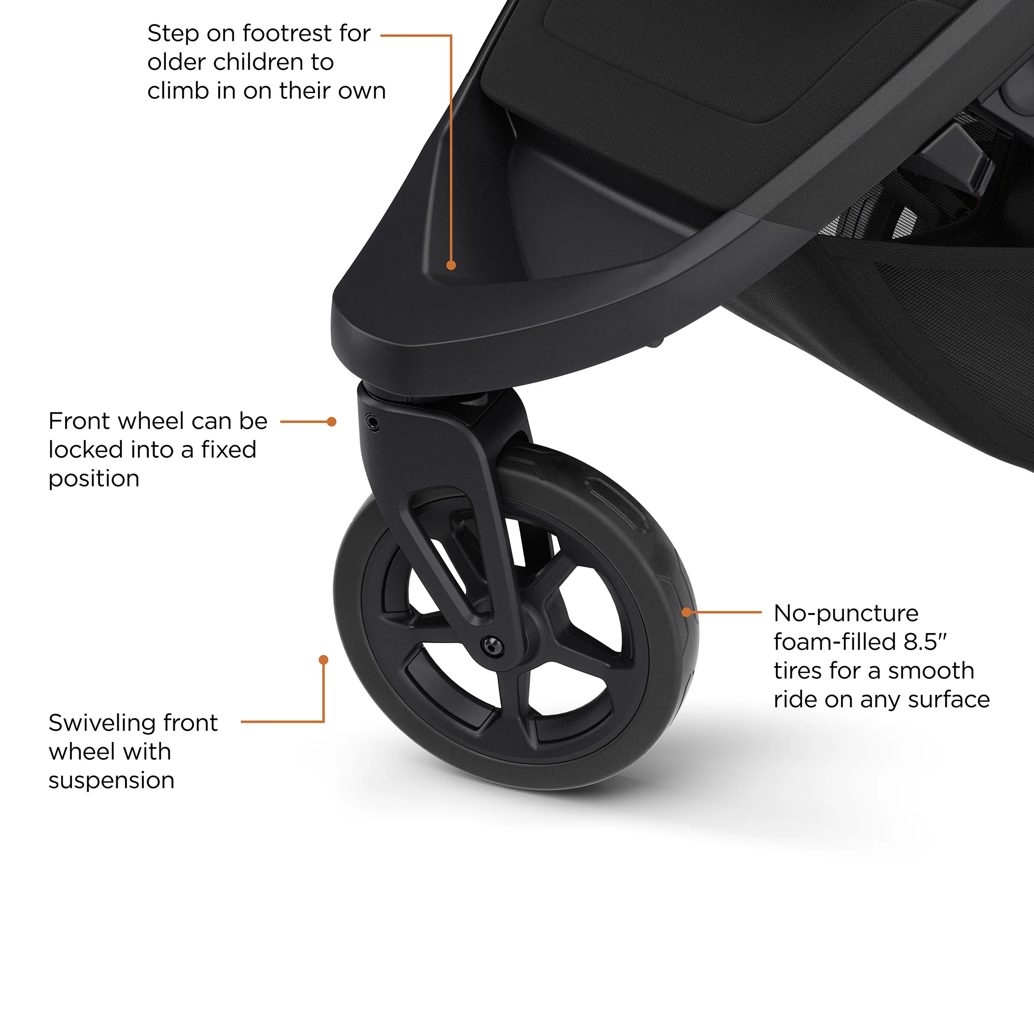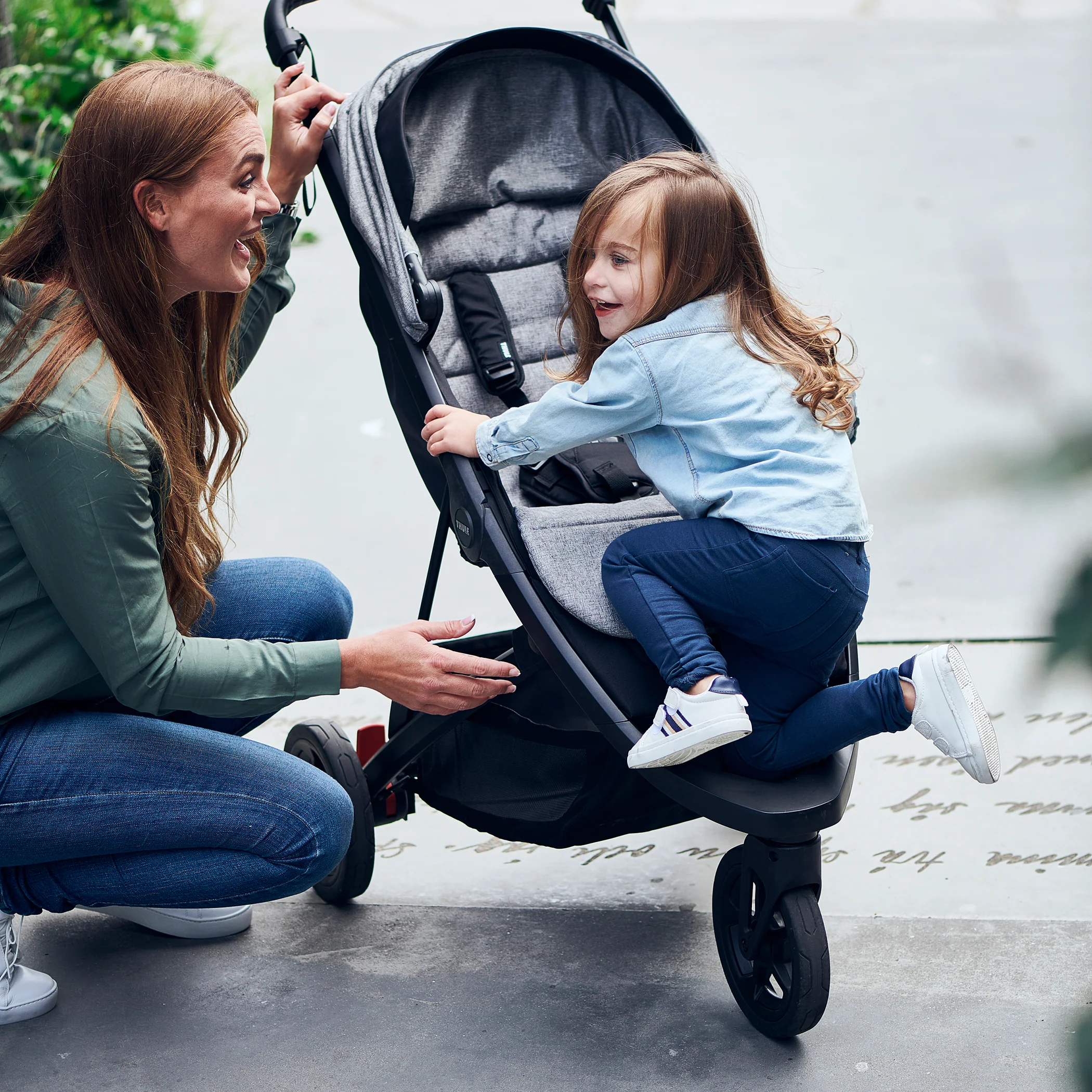 - Step-in footrest makes it easy for older children to climb into the stroller on their own