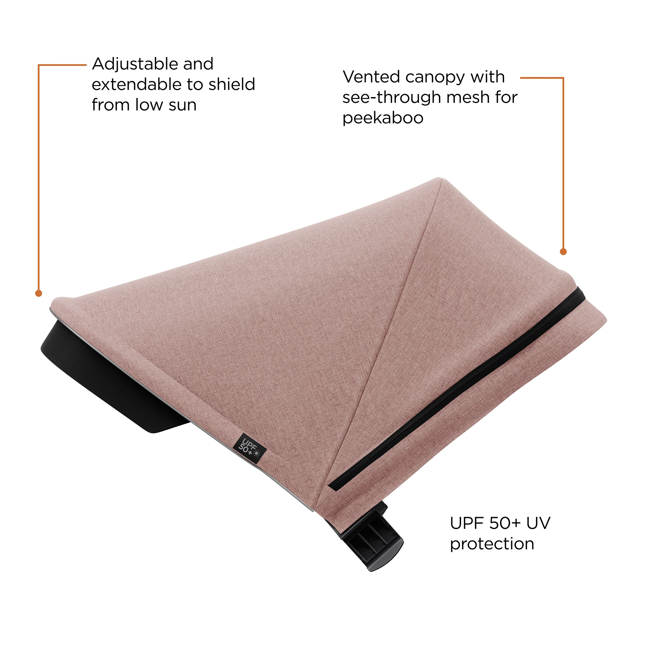 - Oversized adjustable canopy with integrated extension that shields from low sun and provides UPF 50+ UV protection (canopy is sold separately)
