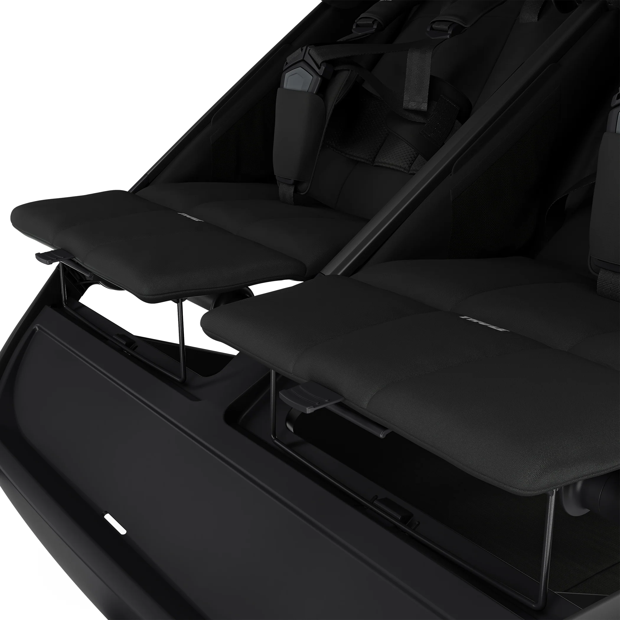 - Adjustable, independent seats with stepless recline and built-in leg rests provides personalized comfort for each child