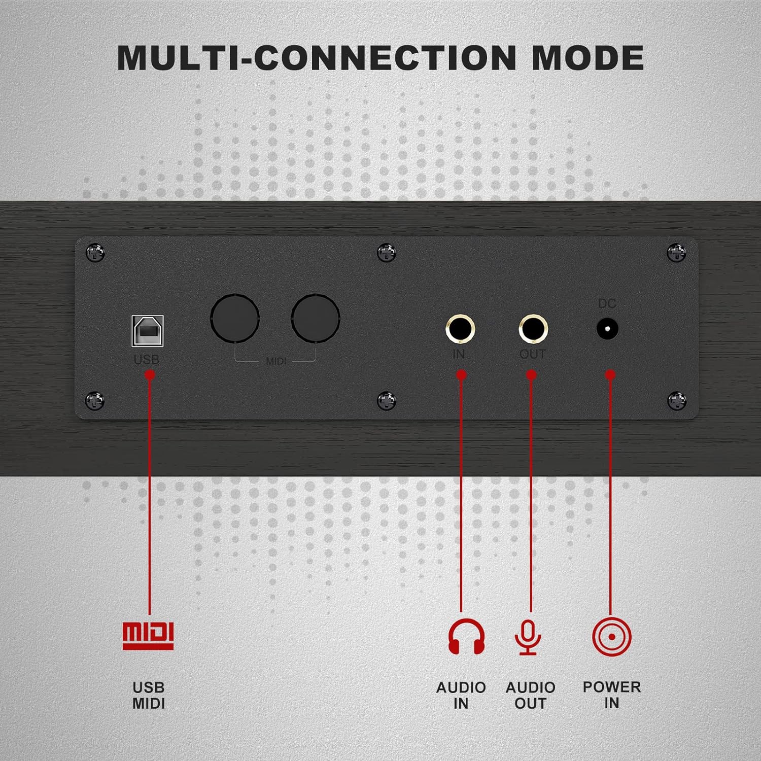 - 🎹 Well Connected - This weight key piano features USB/ MIDI/ AUDIO/ HEADPHONE TERMINAL, MIDI input/ out allows you connect computer, table, phone to learn lessons easily; Audio input/ output allows you to connect the external speaker; Headphone input (3.5 mm) allows you to connect headphone which can not disturb others’ relax.