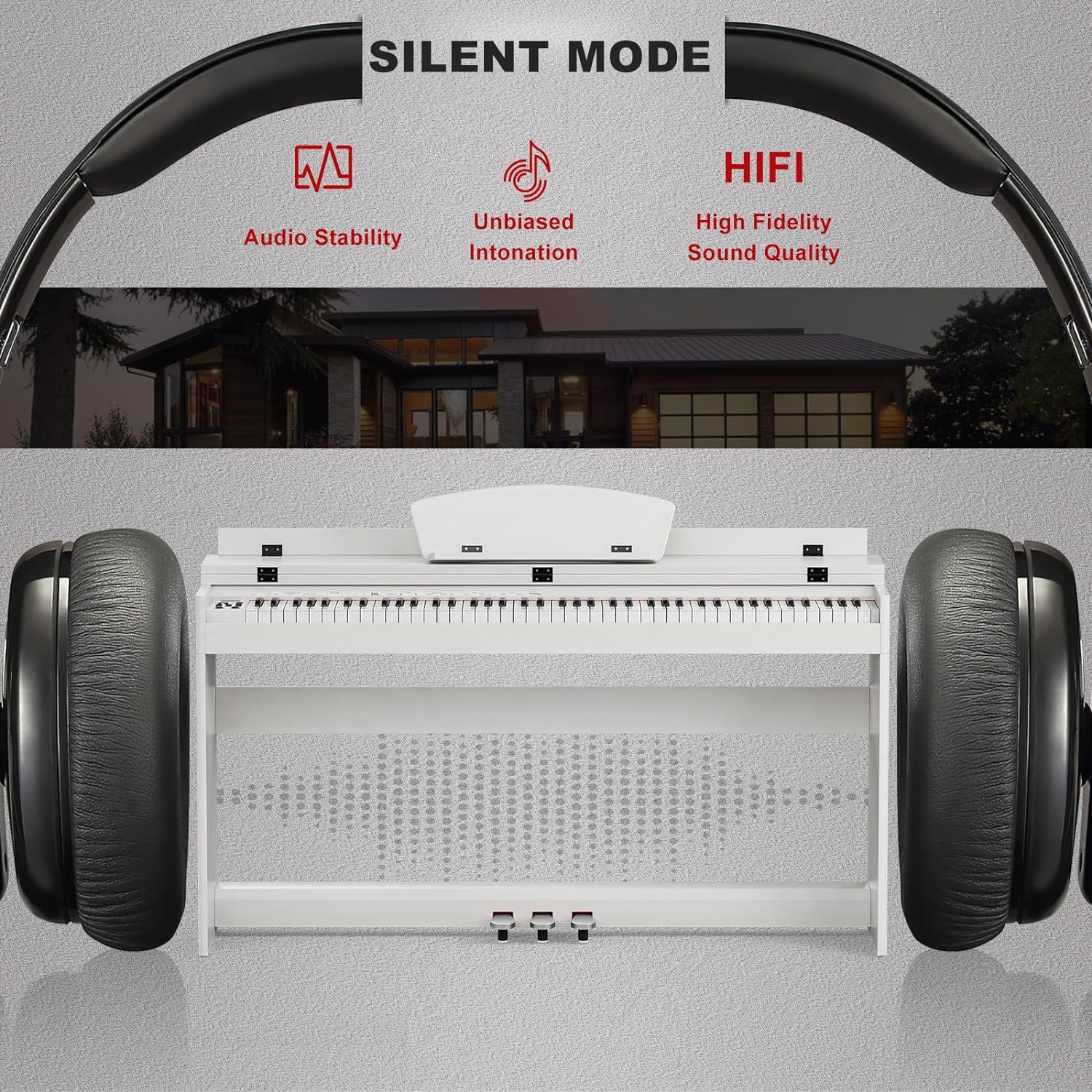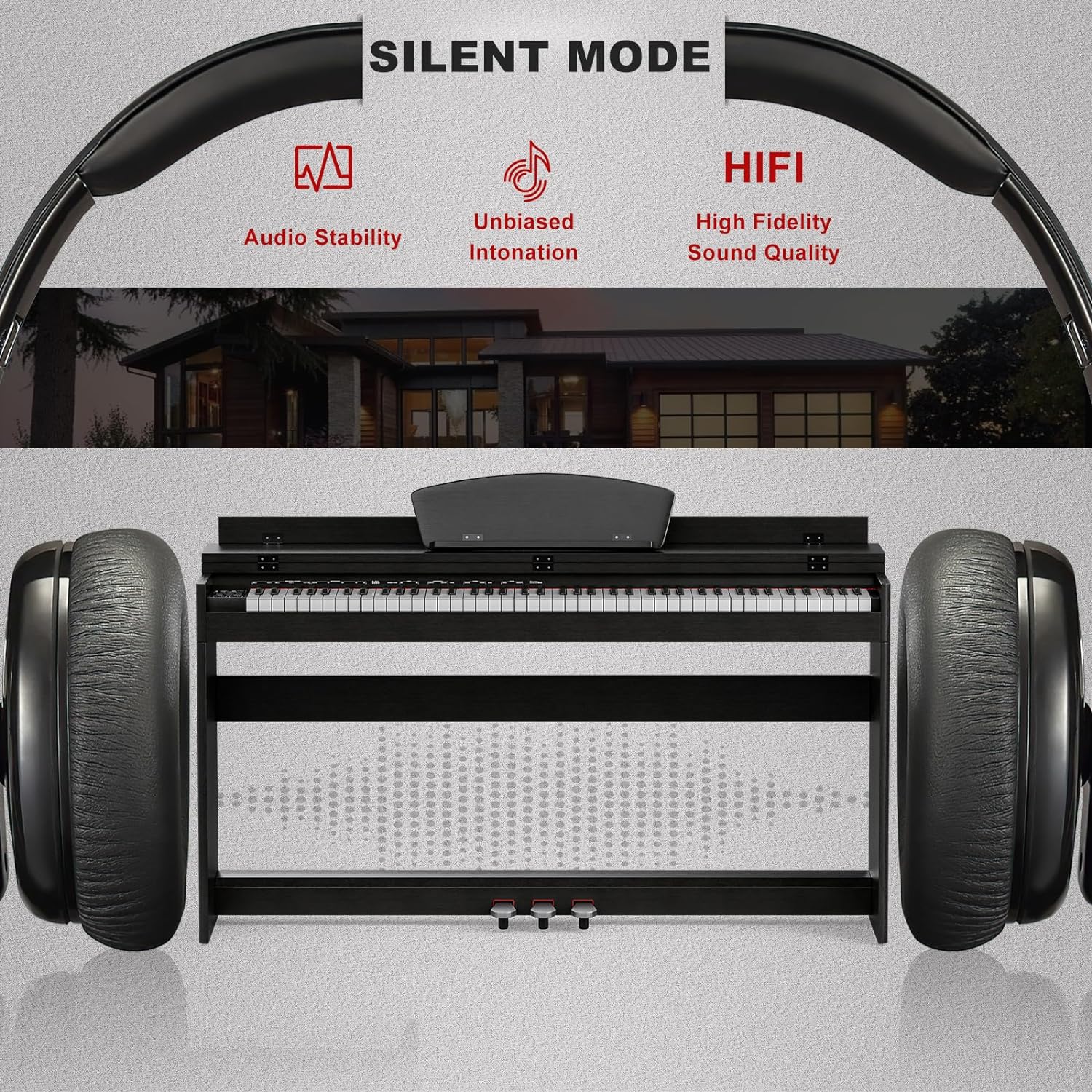 - 🎹 QUIET MODE-This 88 key piano with headphone jack,you will find it at the bottom of the piano(headphone is not included,but most headphones are available),so you don't worry will disturb others' relax when you are playing.Note:Piano and Bench will be delivered in two parcels