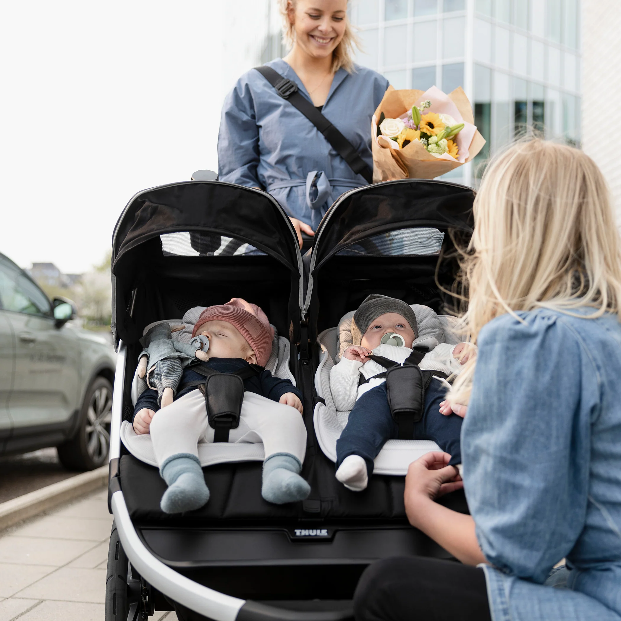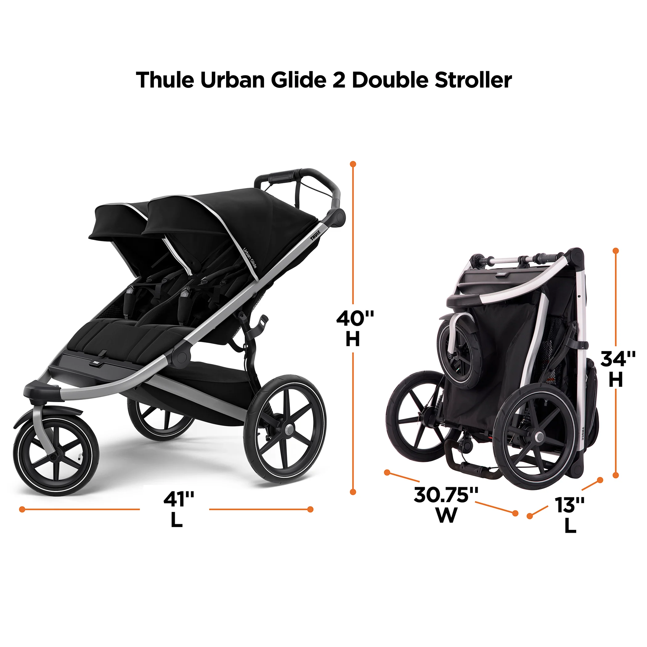 The Thule Urban Glide 2 Double is the ultimate lightweight all-terrain stroller that lets you share your active life with your children, from urban exploration to strolling on your favorite path or jogging. Comfortable for 2 children and parents.