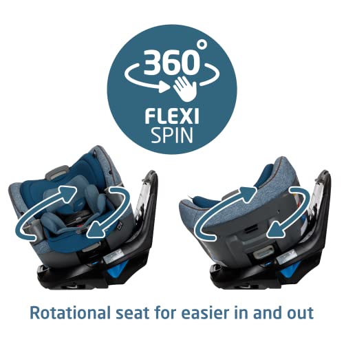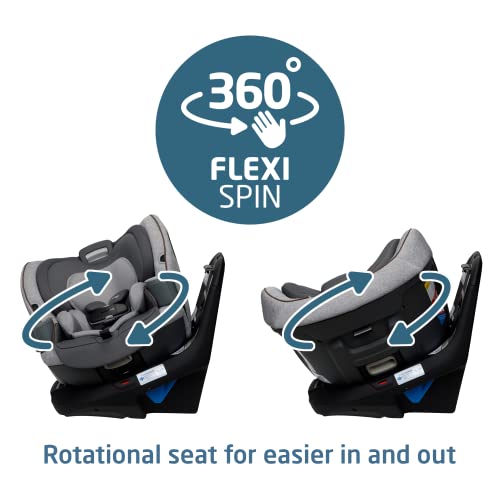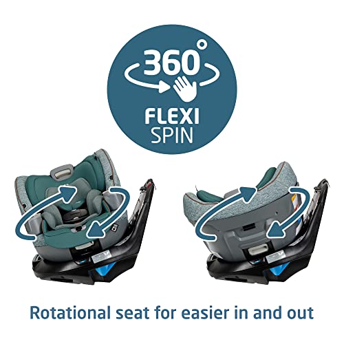 • 360° FlexiSpin rotational seat makes getting your child in and out of the car easier than ever. Soft locks in the base keep the seat steady when buckling and unbuckling. Easy-turn handles make the seat simple to rotate