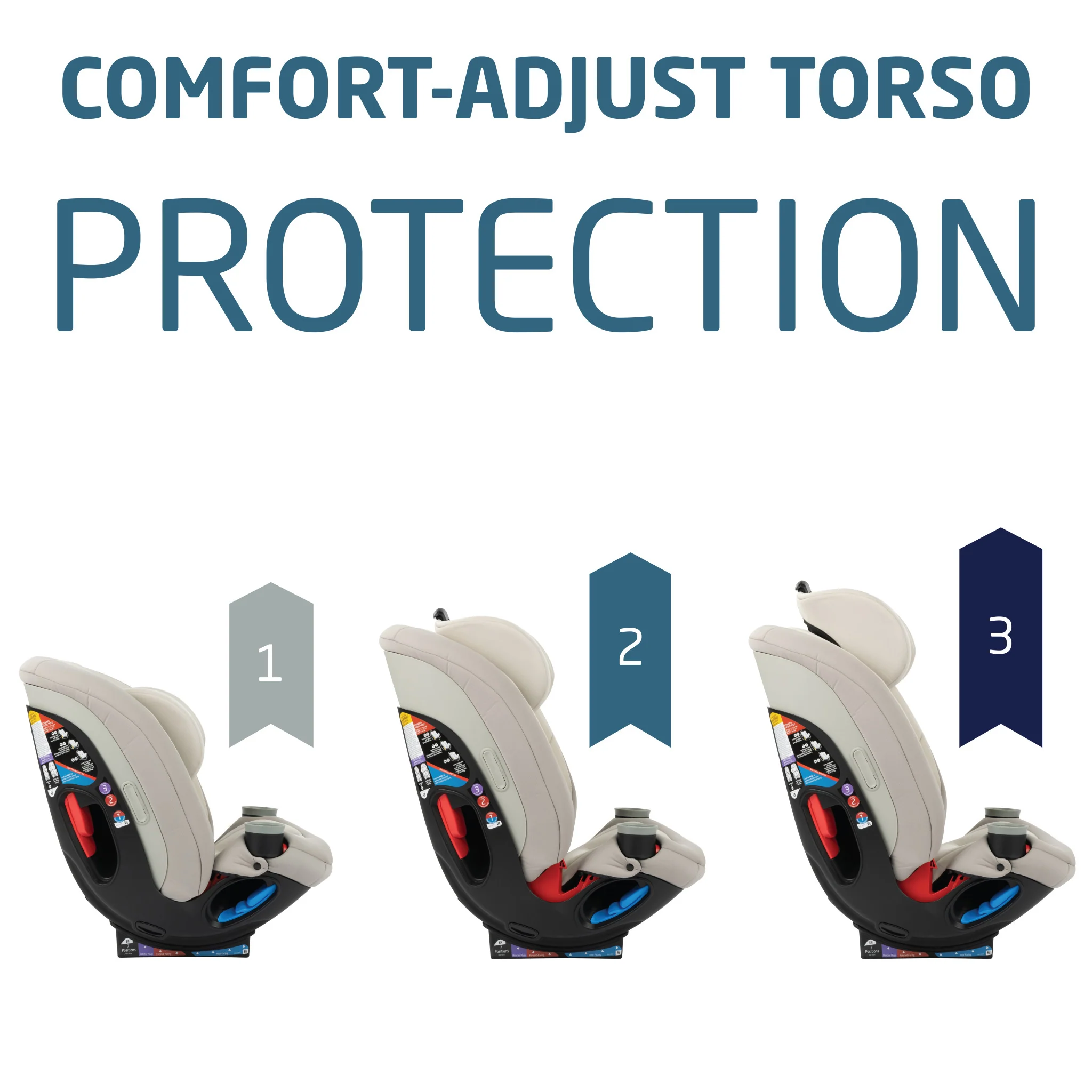 • With plush, full-featured European design, it protects with a seven-position recline, the only adjustable torso side-impact protection with three torso height positions, and 14 headrest heights that raise the harness automatically for best fit.