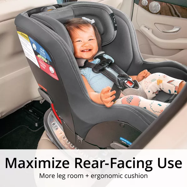 The NextFit Max ClearTex Extended-Use Convertible Car Seat from Chicco is engineered to comfortably maximize rear-facing mode. From textiles to tags, it features no added chemicals & top-rated safety features make it the easiest to install.