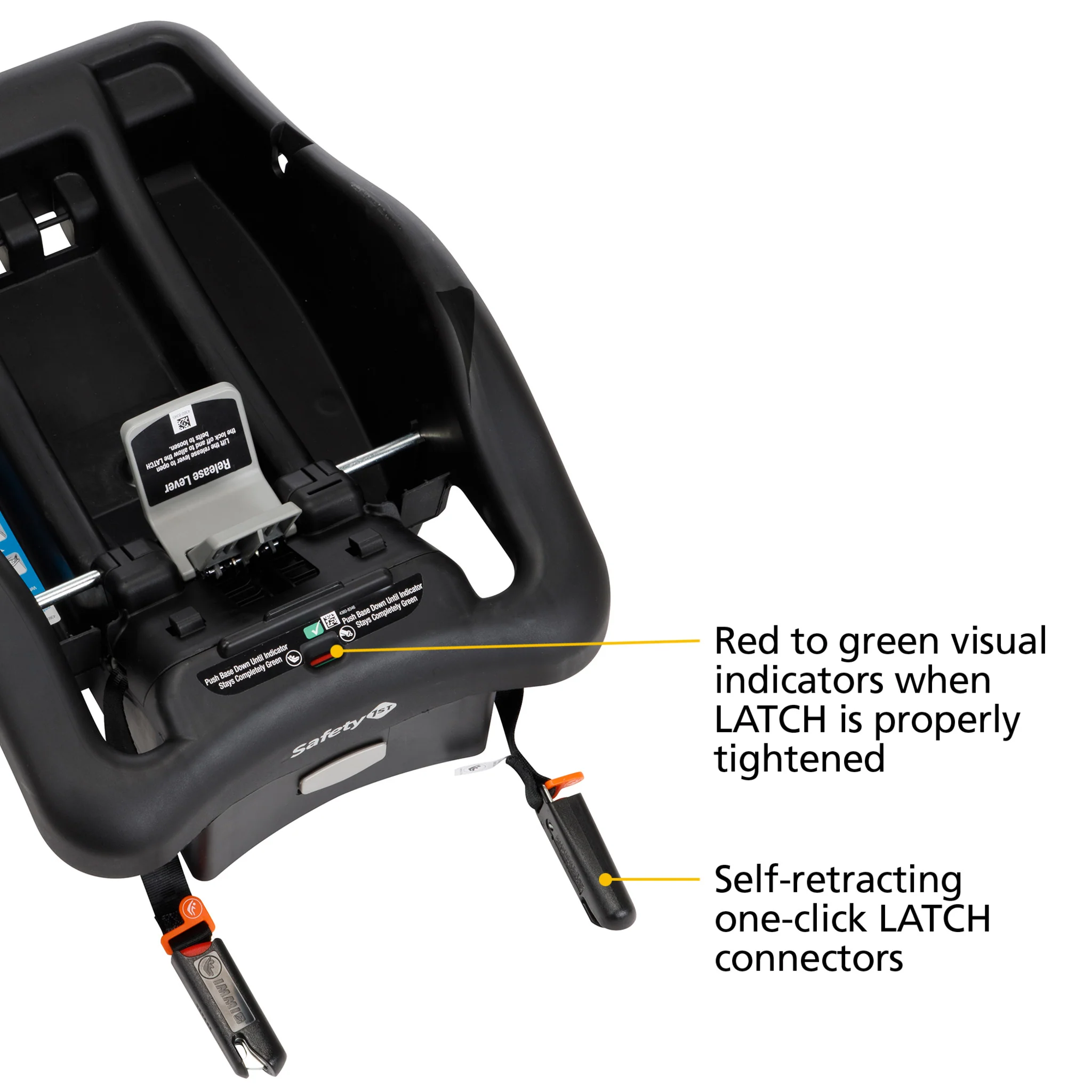 The Safety 1st OnBoard™ 35 with SecureTech™ Infant Car Seat features the SecureTech™ installation system with self-retracting one-click LATCH connectors for quick and secure installation. Visual indicators on the base turn from red to green as you tighten the LATCH in your vehicle, showing you when your belt has tension. The base height is also adjustable to get the right fit in your car.
