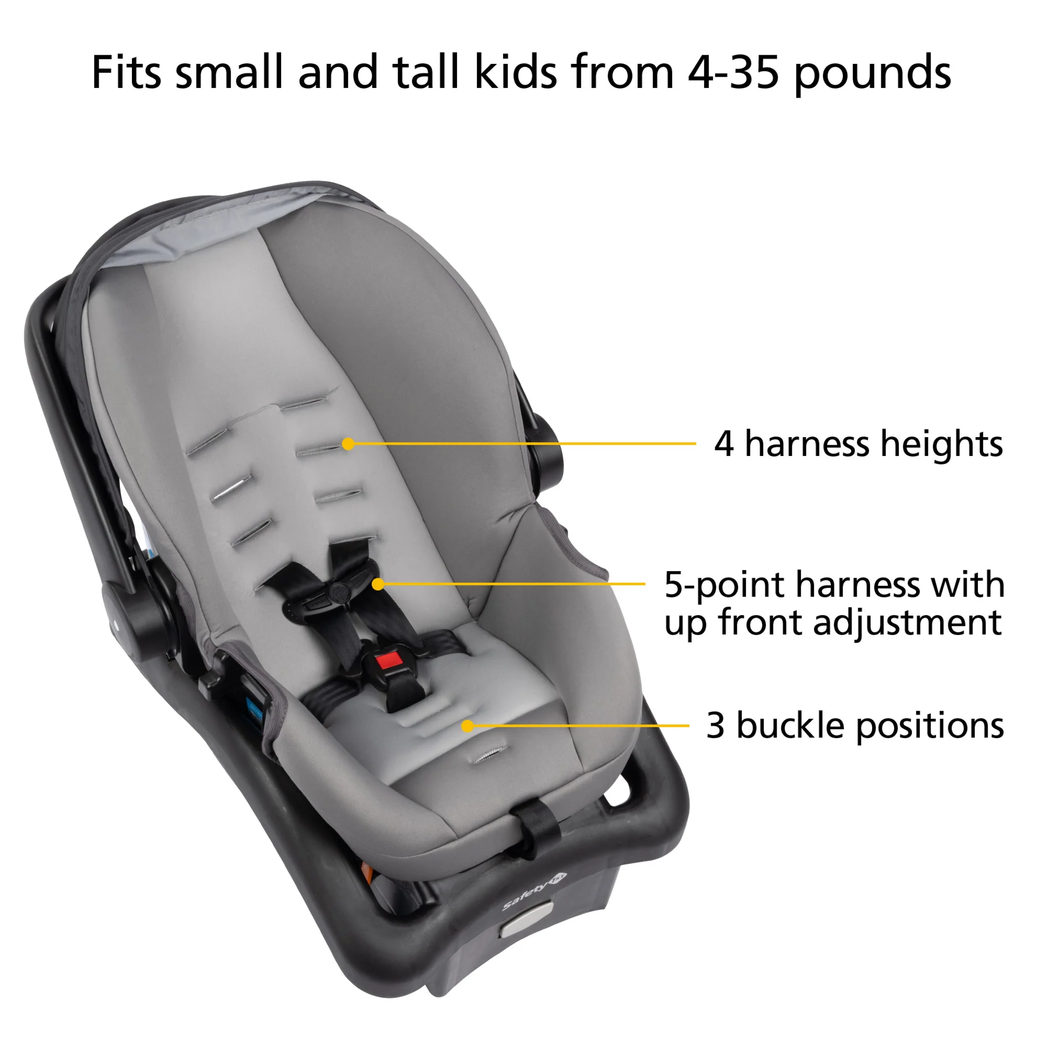- The 4 harness heights are spaced right to give your child a better fit from 4–35 lbs