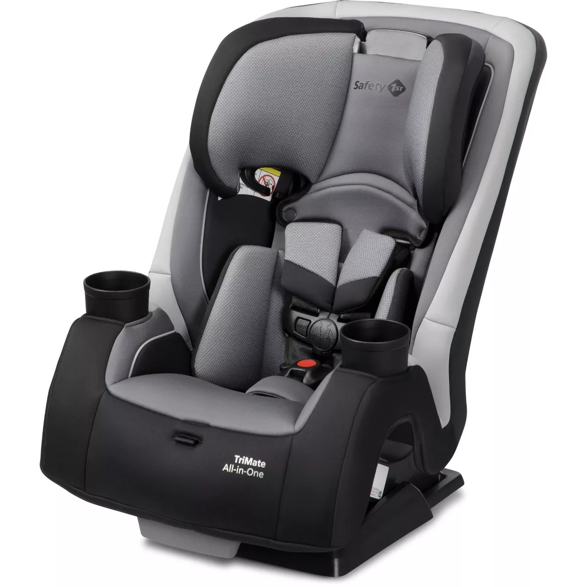 The Safety 1st TriMate All-in-One Convertible Car Seat is built to grow with your child while keeping them secure and comfortable on the road. With three modes of use—rear-facing (5–40 lbs. and 19”–40”), forward-facing (22–65 lbs. and 22”–49”), and belt-positioning booster (40–100 lbs. and 43”–52”)—the TriMate is ready to take your baby home from the hospital or your big kid to soccer practice. The seat’s ultra-slim design fits 3 across the back seat without sacrificing comfort. Fabric is machine-washable and dryer-safe. You’ll always get the best fit with the 3-position adjustable base, 1-hand-adjustable harness system, and 9-position headrest. It’s the only car seat your child will need from birth through age 10.