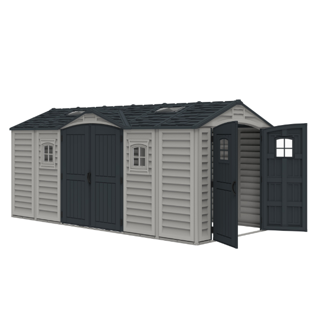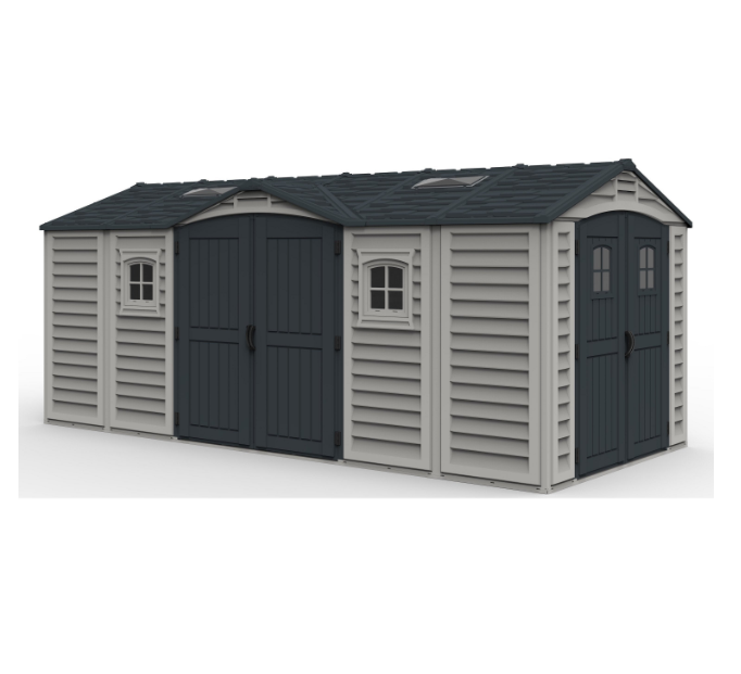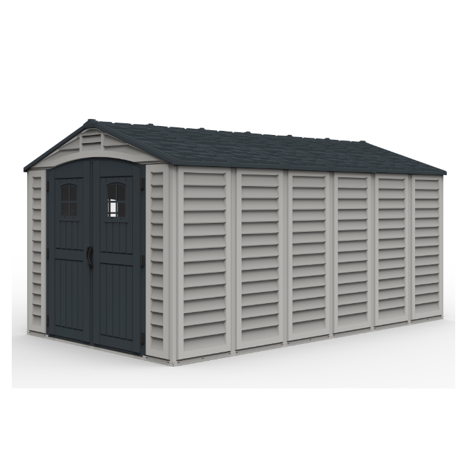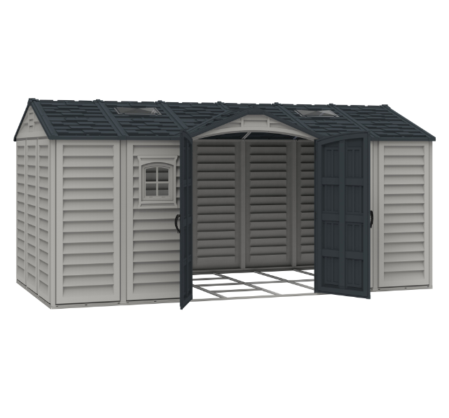 Duramax 15 x 8 Apex Pro Vinyl Shed with Foundation, 2 Windows and Side Door (East Coast Purchase Only)